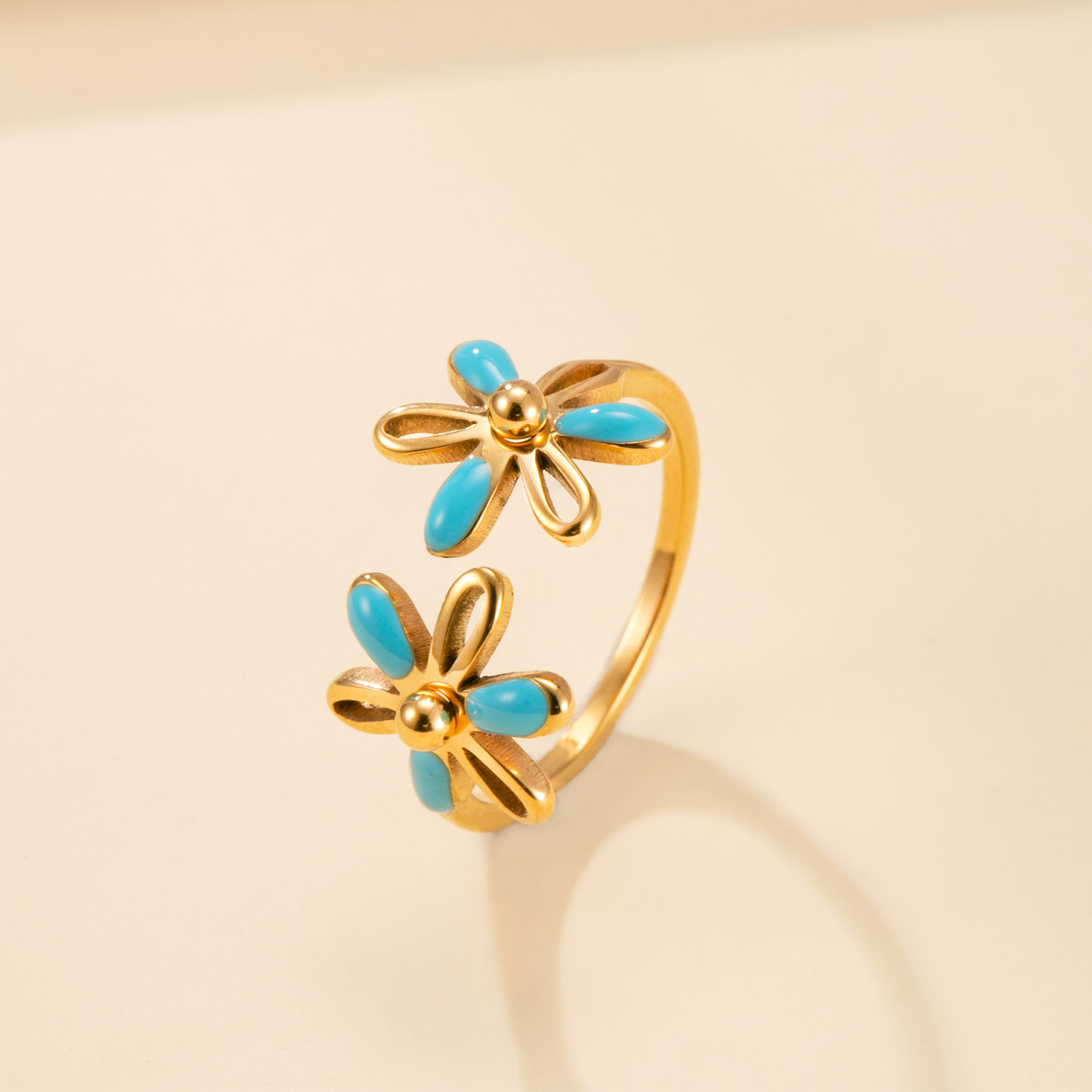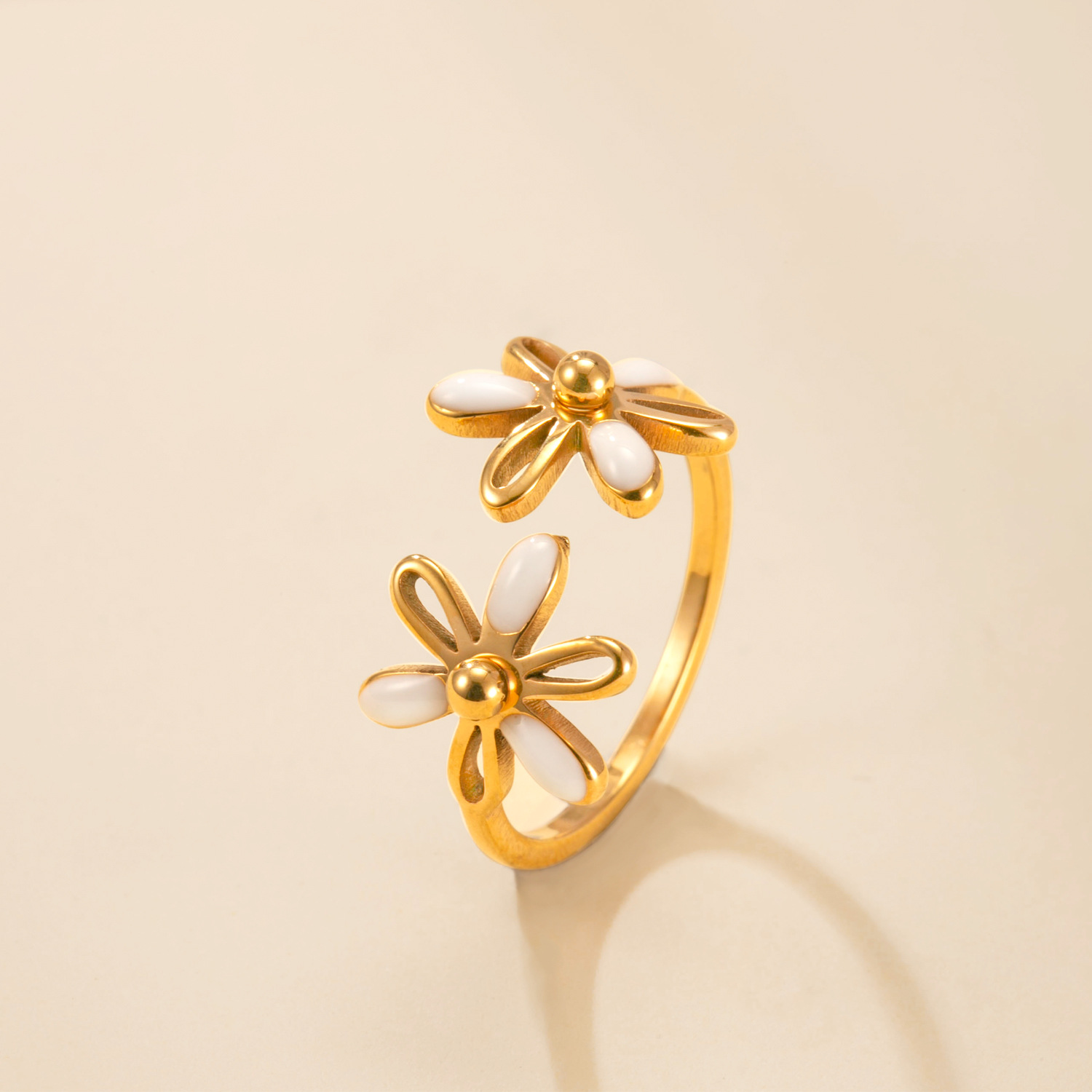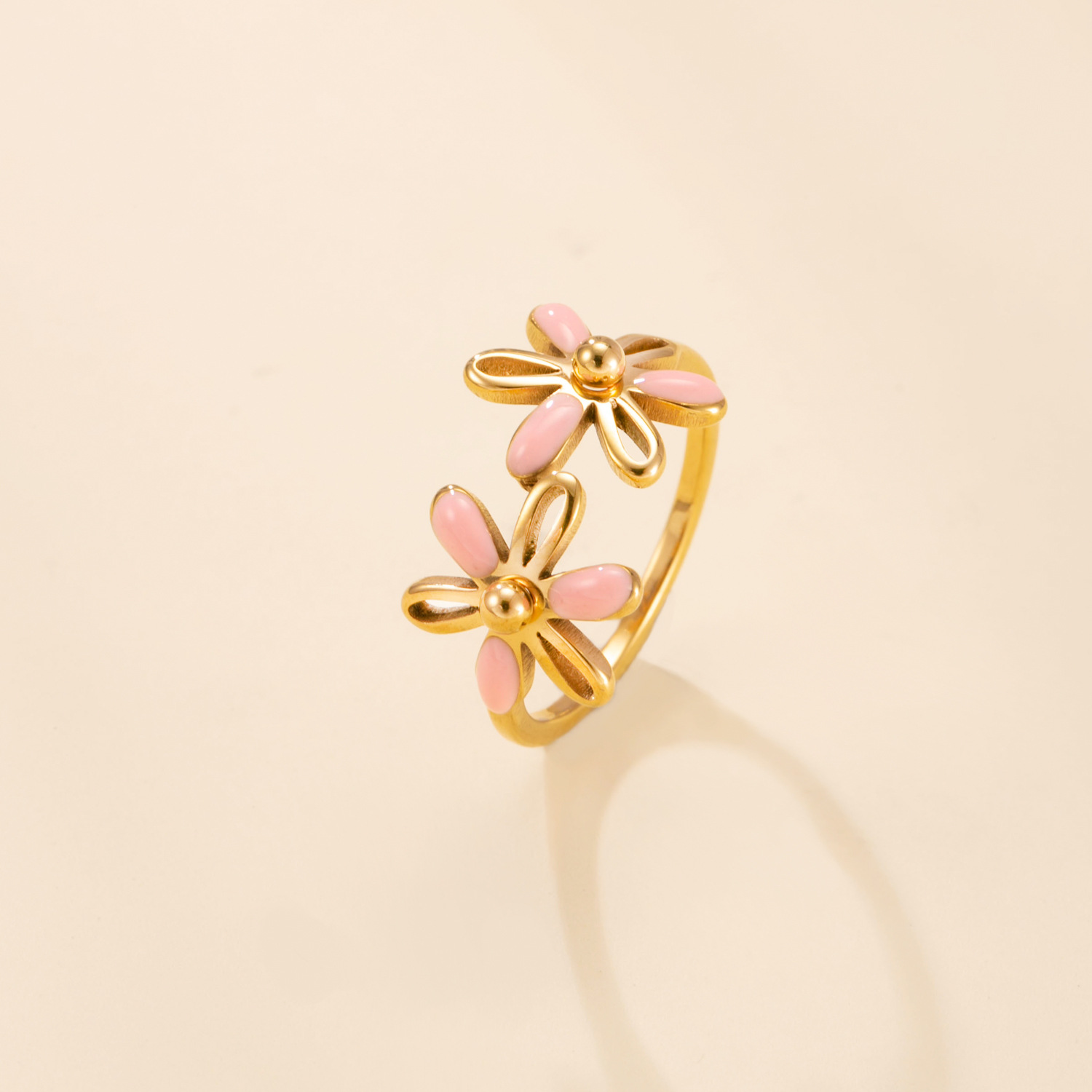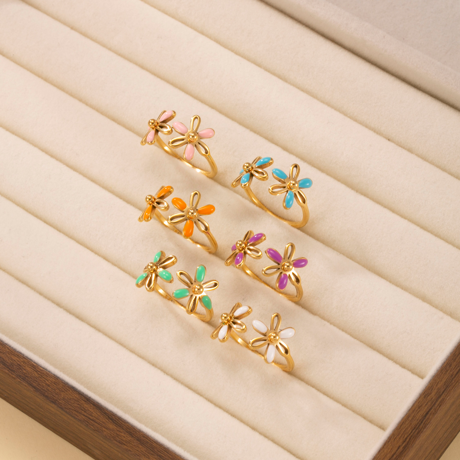 Acier inoxydable 304 Cuff Bague, fleur, Placage de couleur d'or, pour femme & émail & creux, plus de couleurs à choisir, Vendu par PC