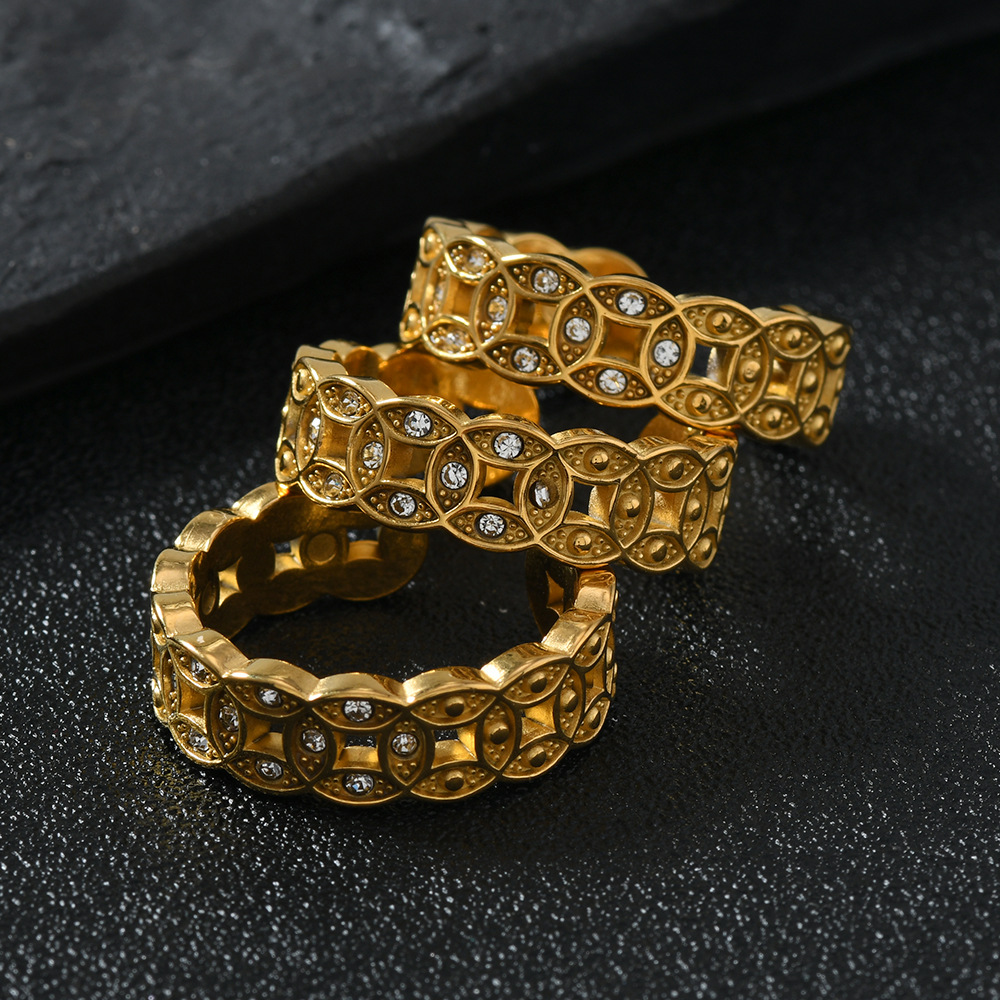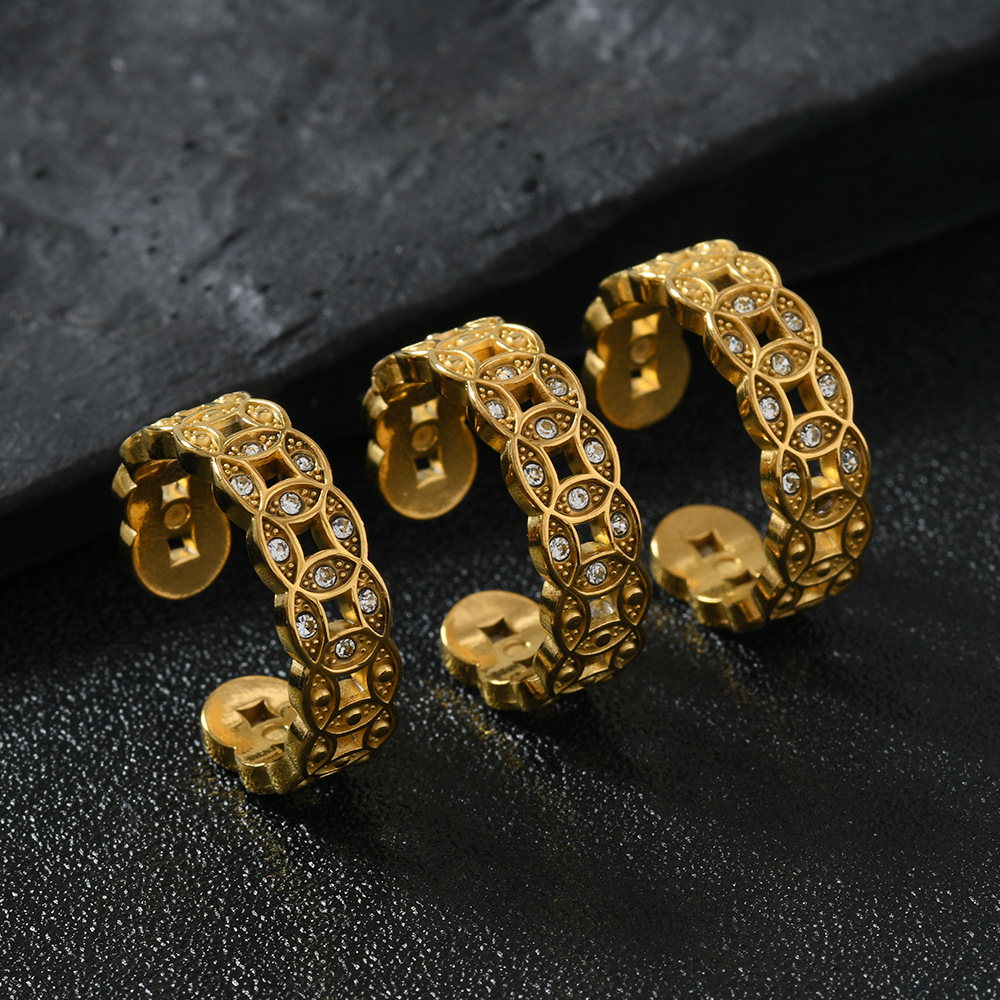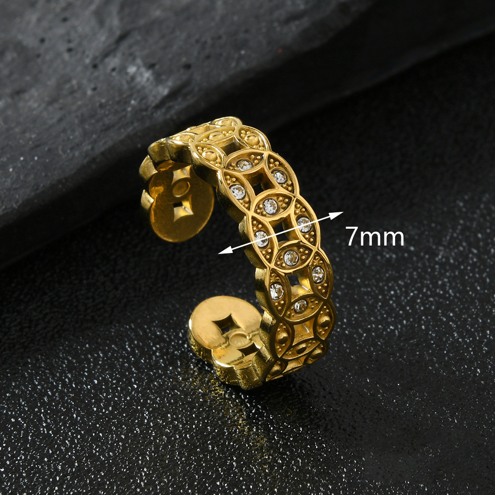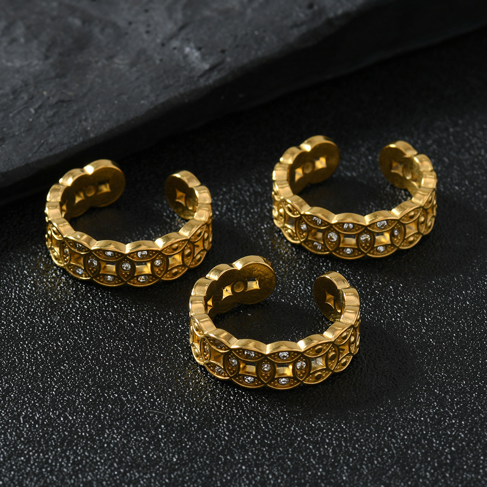 Acier inoxydable 304 Cuff Bague, Plaqué or 18K, styles différents pour le choix & pour femme & avec strass & creux, Vendu par PC