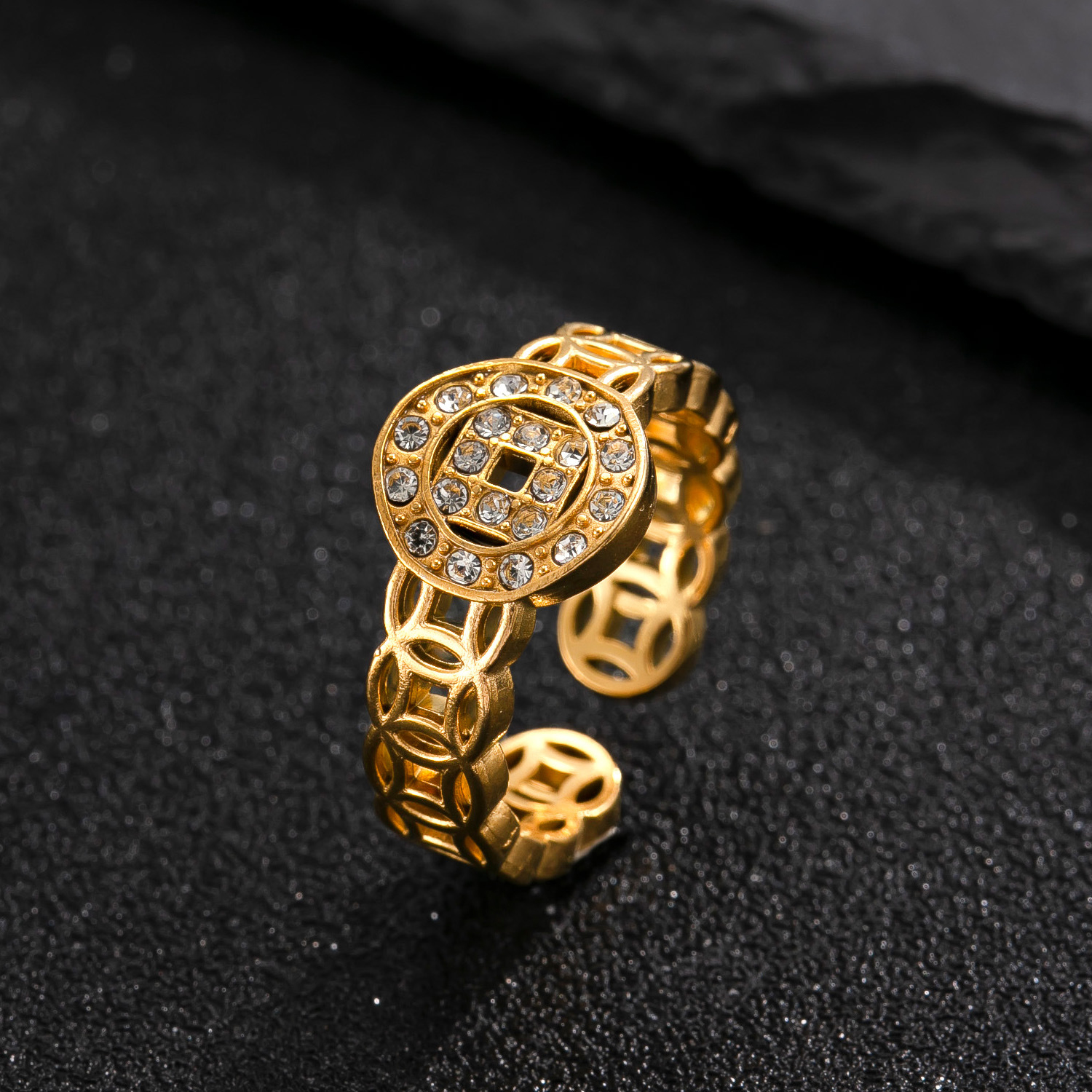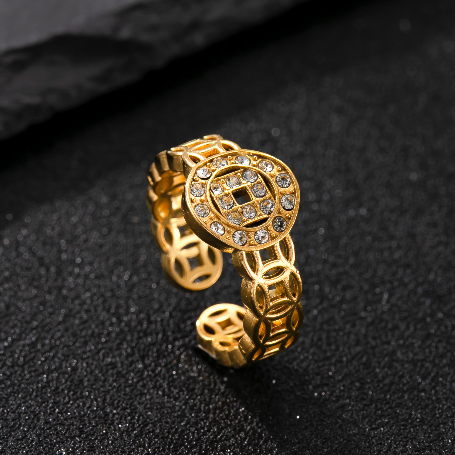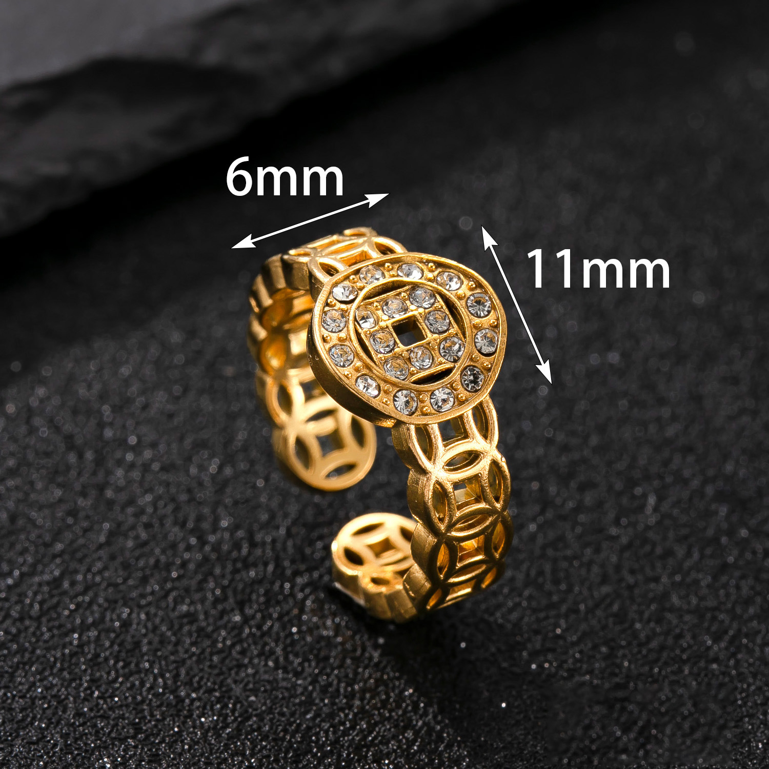 Acier inoxydable 304 Cuff Bague, Plaqué or 18K, styles différents pour le choix & pour femme & avec strass & creux, Vendu par PC