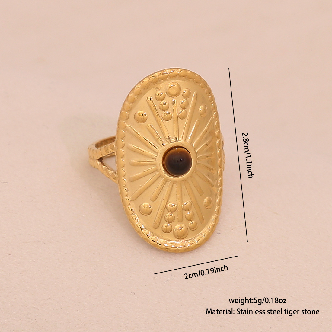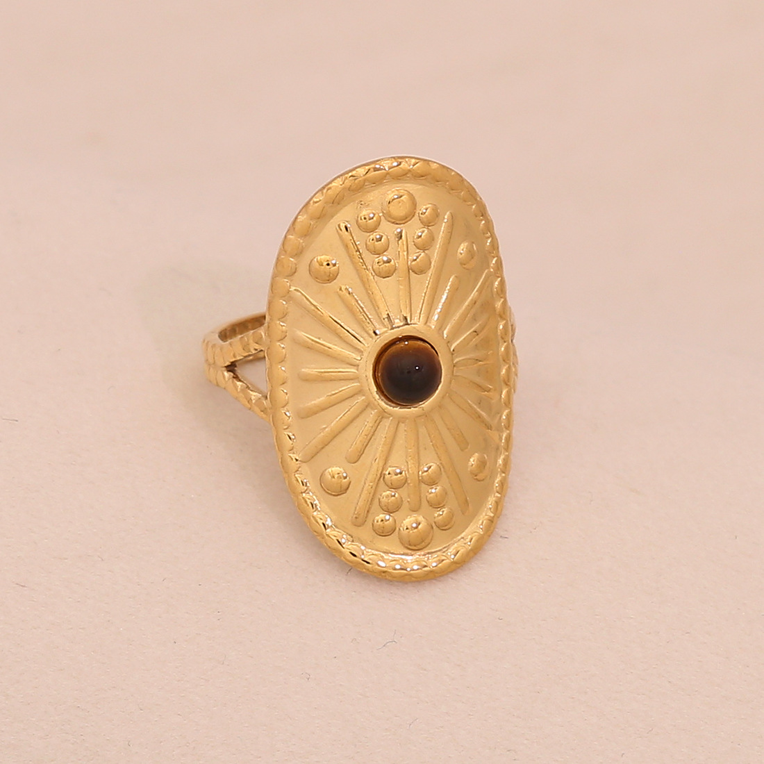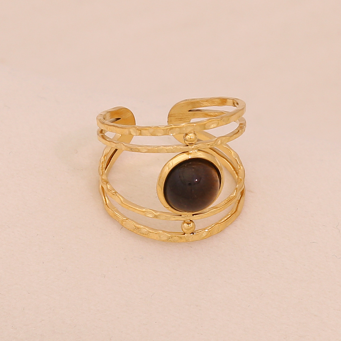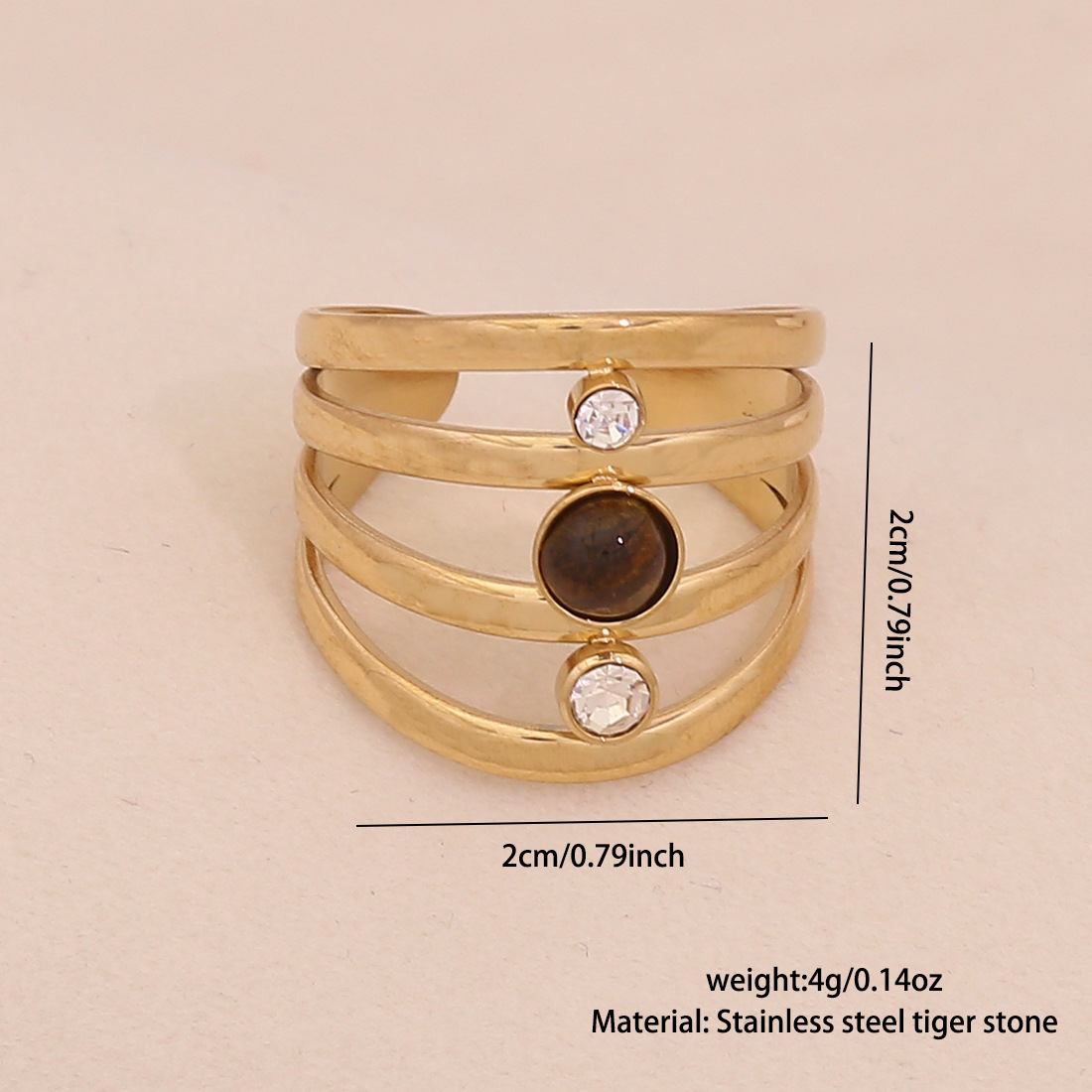 Acier inoxydable 304 Cuff Bague, avec oeil de tigre, Placage, styles différents pour le choix & pour femme & avec strass, doré, Vendu par PC