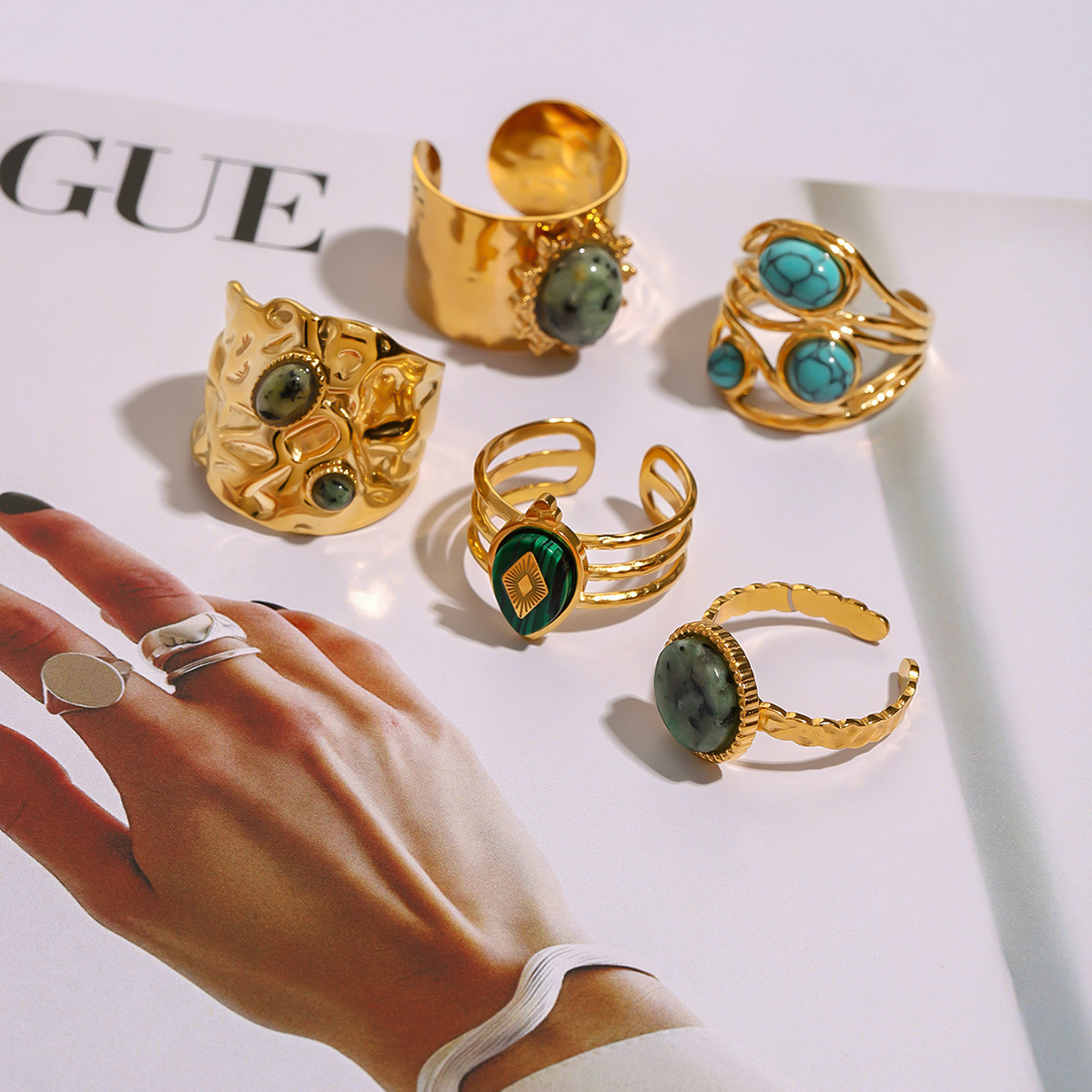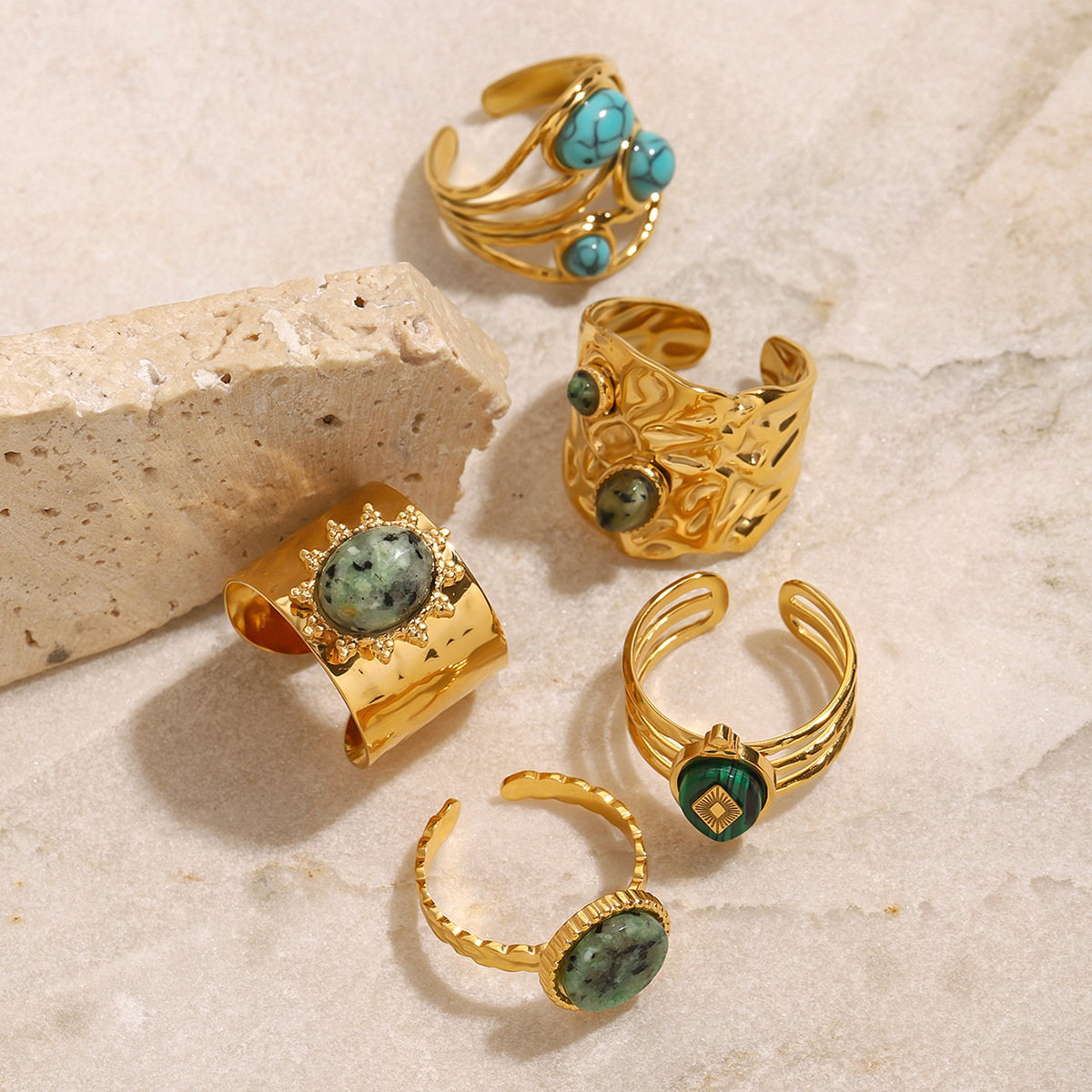 Acier inoxydable 304 Cuff Bague, avec Pierre naturelle, Placage, styles différents pour le choix & pour femme & creux, doré, Vendu par PC