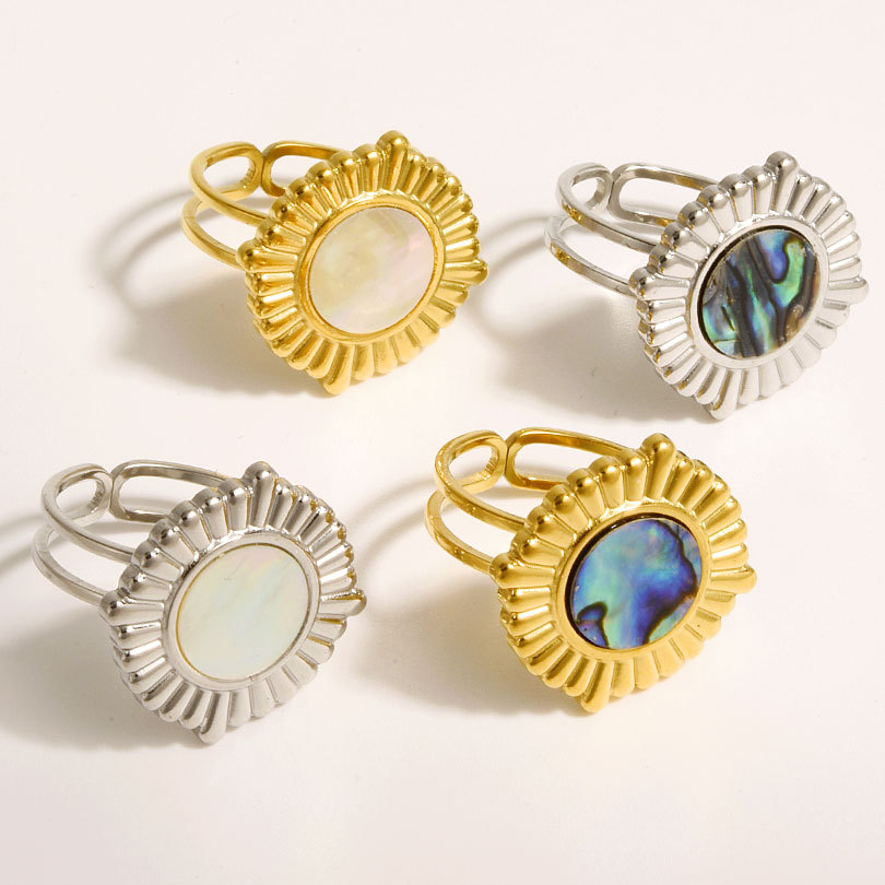 Acier inoxydable 304 Cuff Bague, avec coquille blanche, Placage, différents matériaux pour le choix & pour femme & creux, plus de couleurs à choisir, Vendu par PC