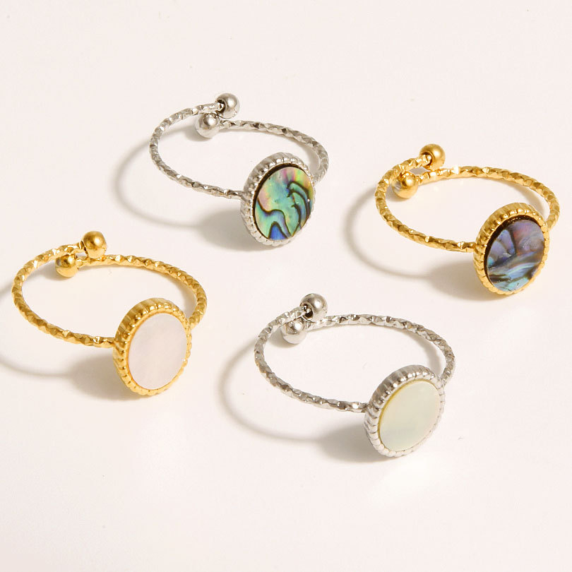 Acier inoxydable 304 Cuff Bague, avec coquille blanche, Placage, bijoux de mode & différents matériaux pour le choix & pour femme, plus de couleurs à choisir, Vendu par PC