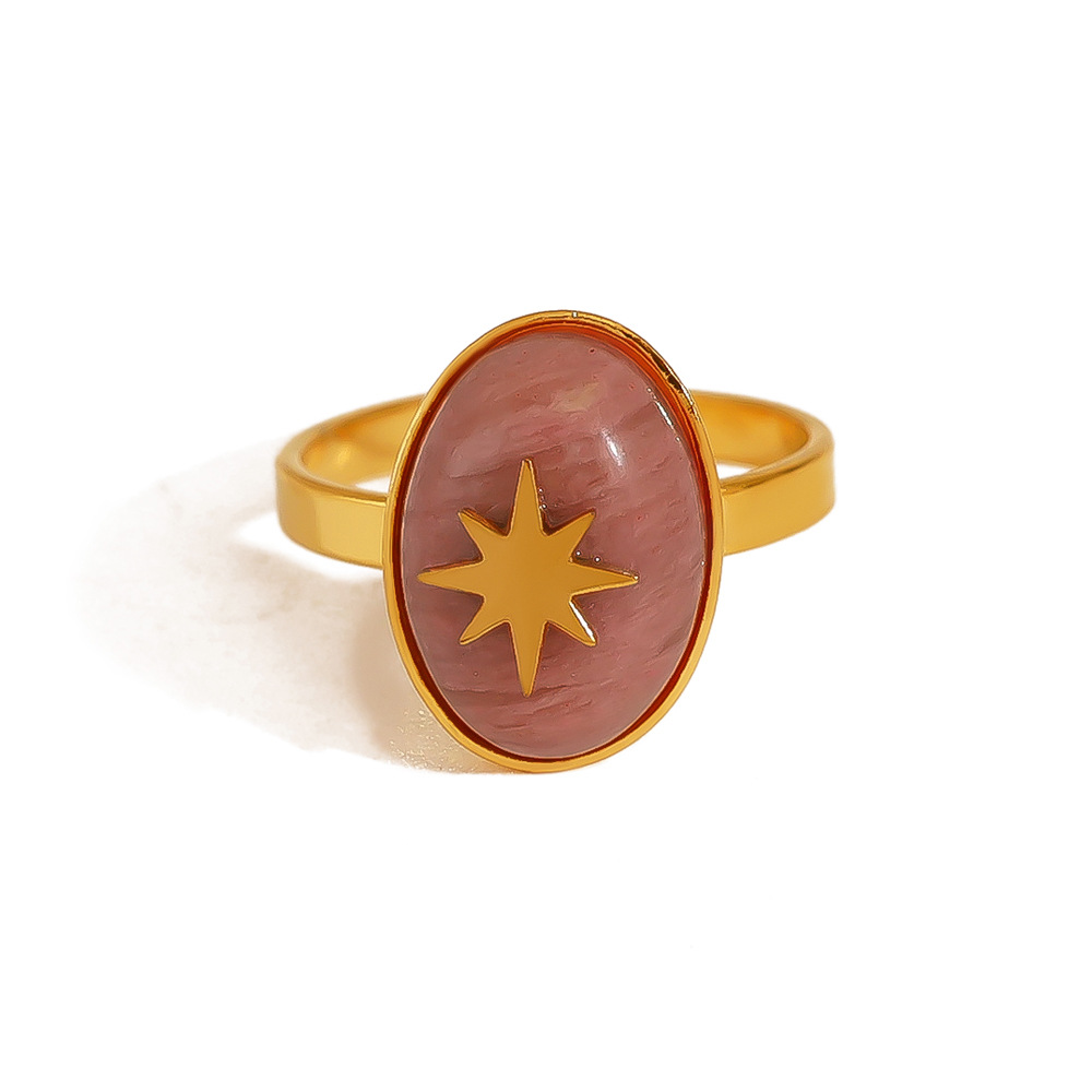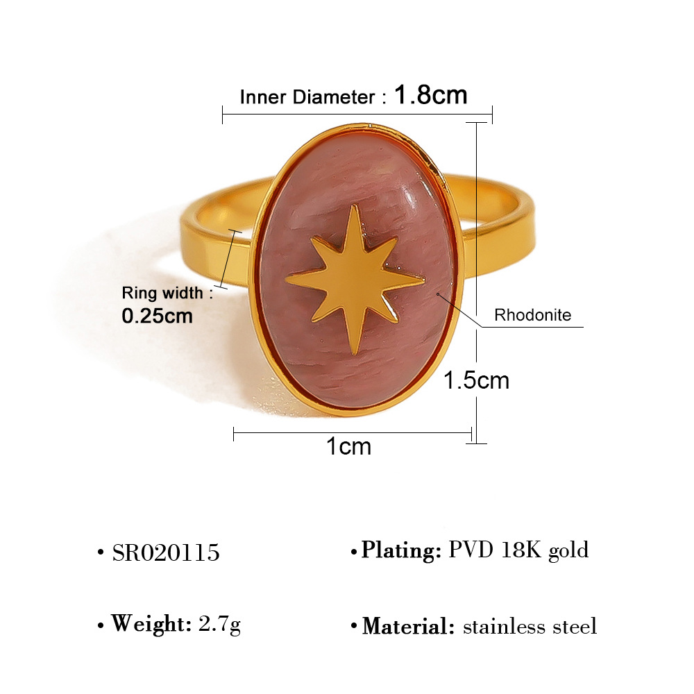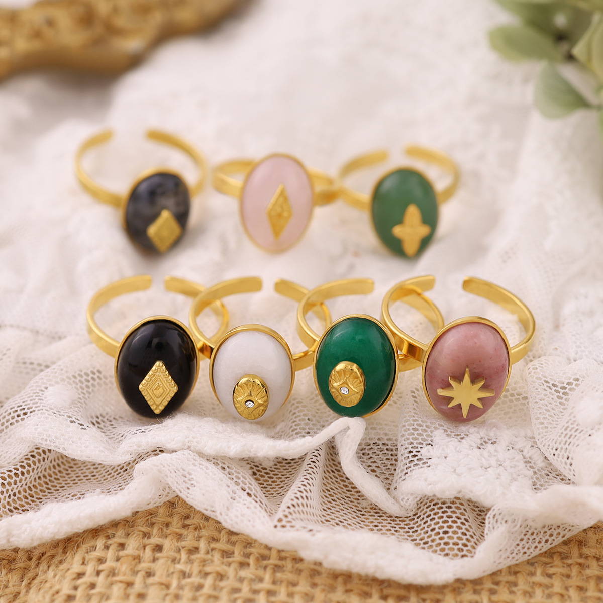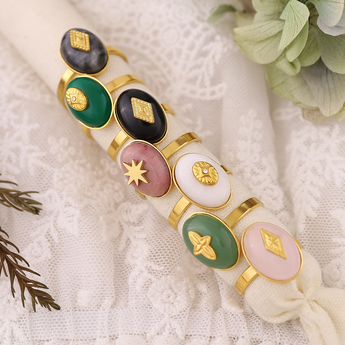 Acier inoxydable 304 Cuff Bague, avec Pierre naturelle, Plaqué or 18K, bijoux de mode & styles différents pour le choix & pour femme, Vendu par PC