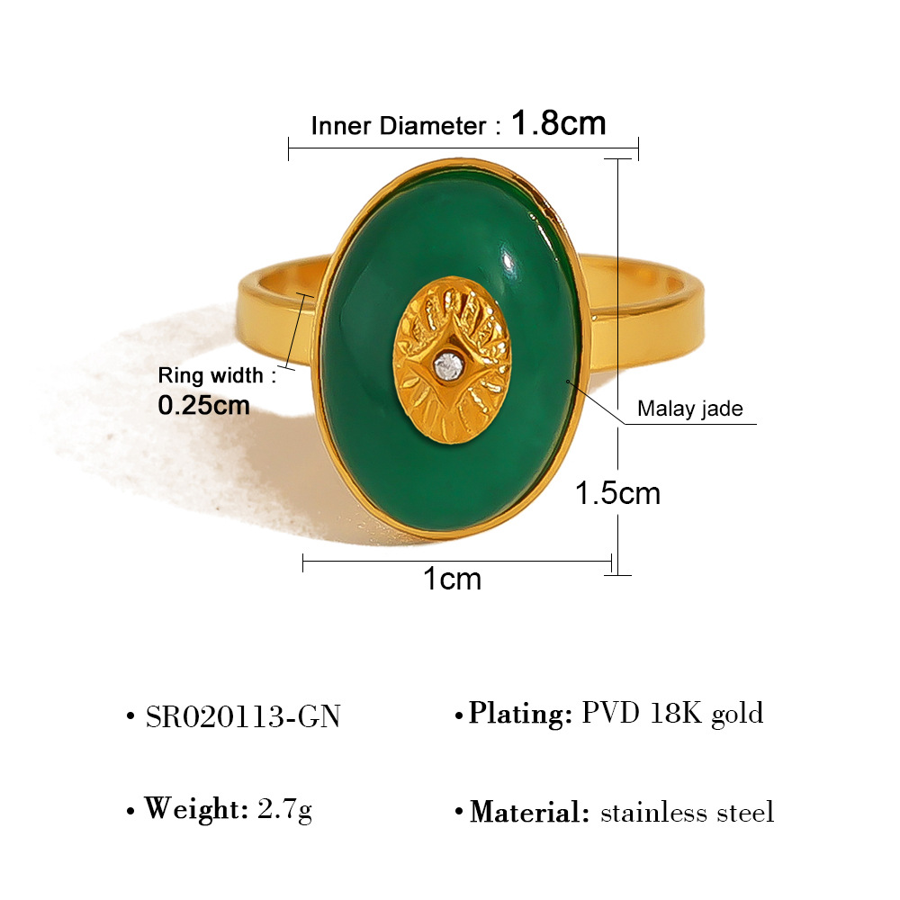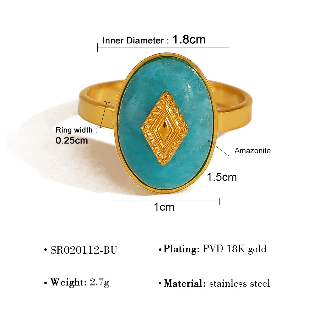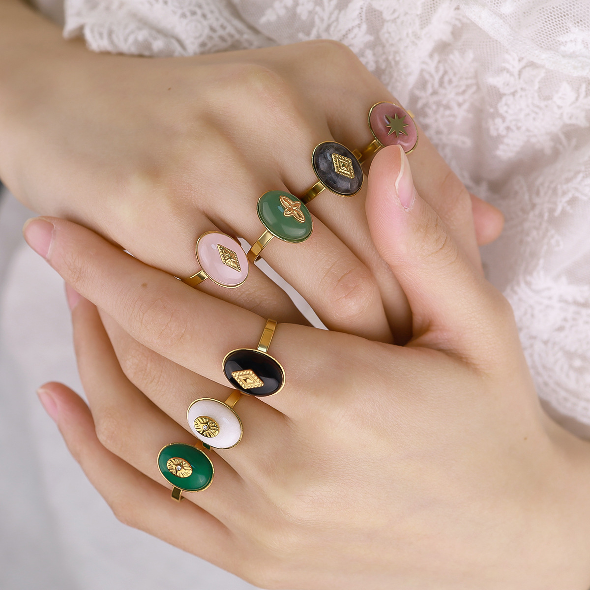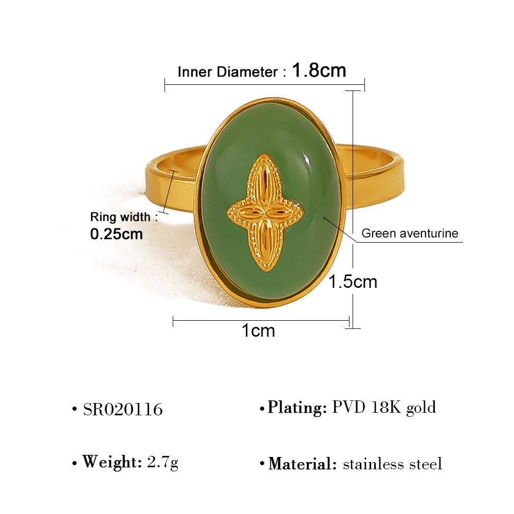 Acier inoxydable 304 Cuff Bague, avec Pierre naturelle, Plaqué or 18K, bijoux de mode & styles différents pour le choix & pour femme, Vendu par PC