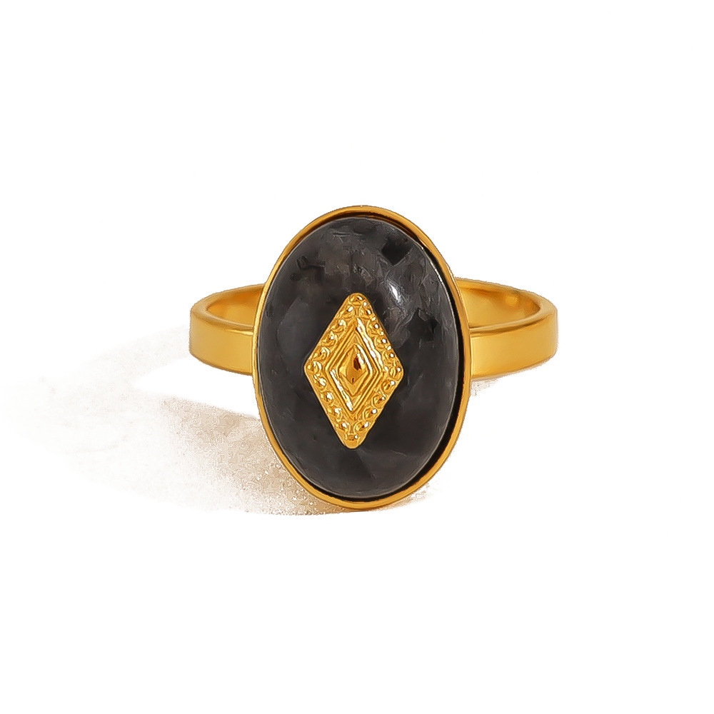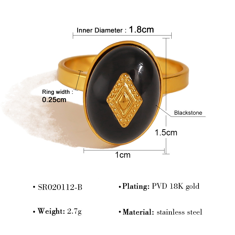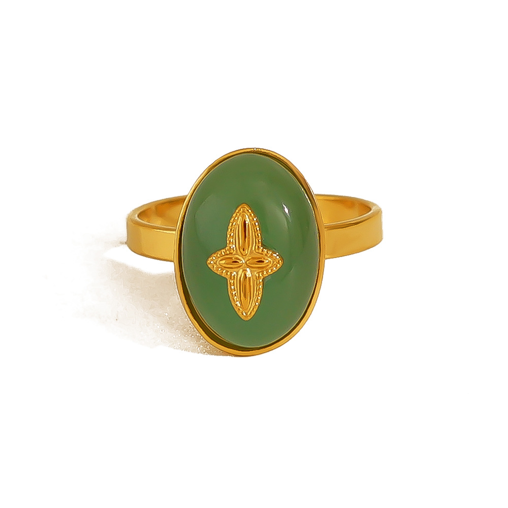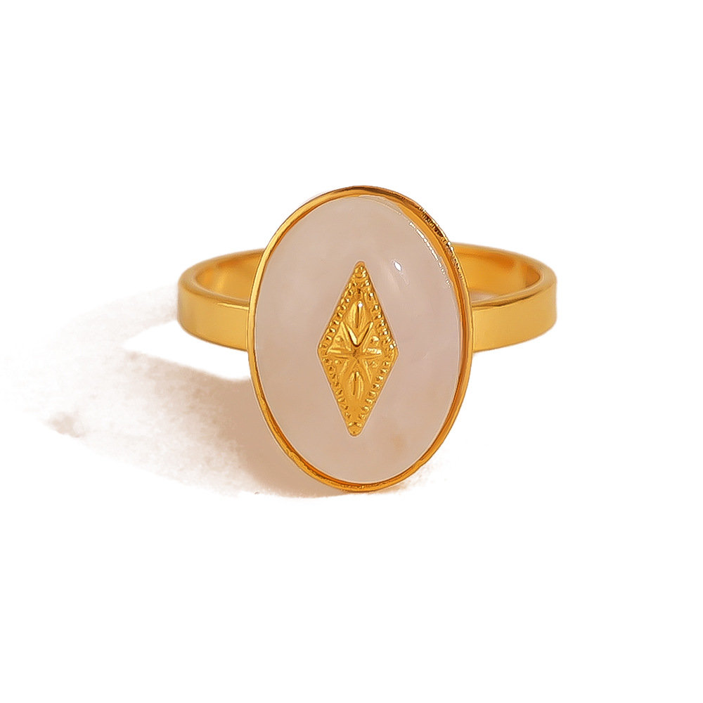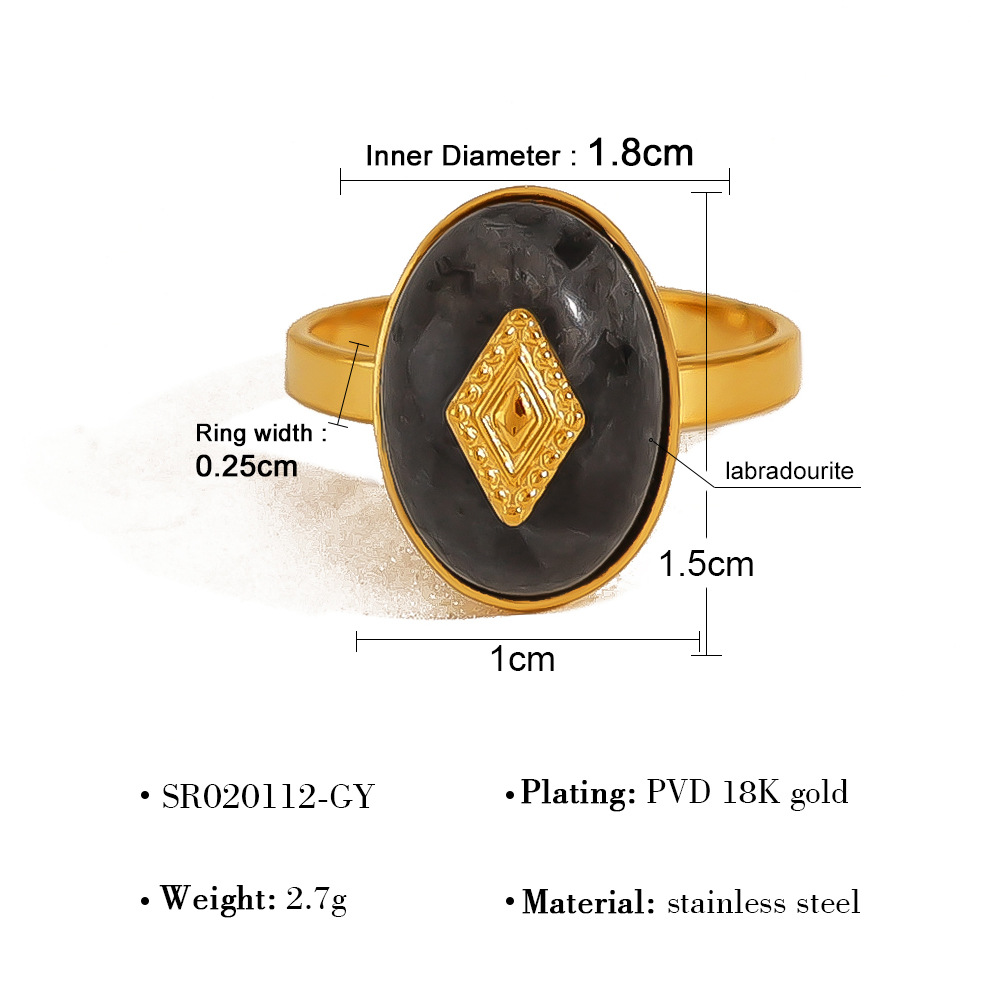 Acier inoxydable 304 Cuff Bague, avec Pierre naturelle, Plaqué or 18K, bijoux de mode & styles différents pour le choix & pour femme, Vendu par PC