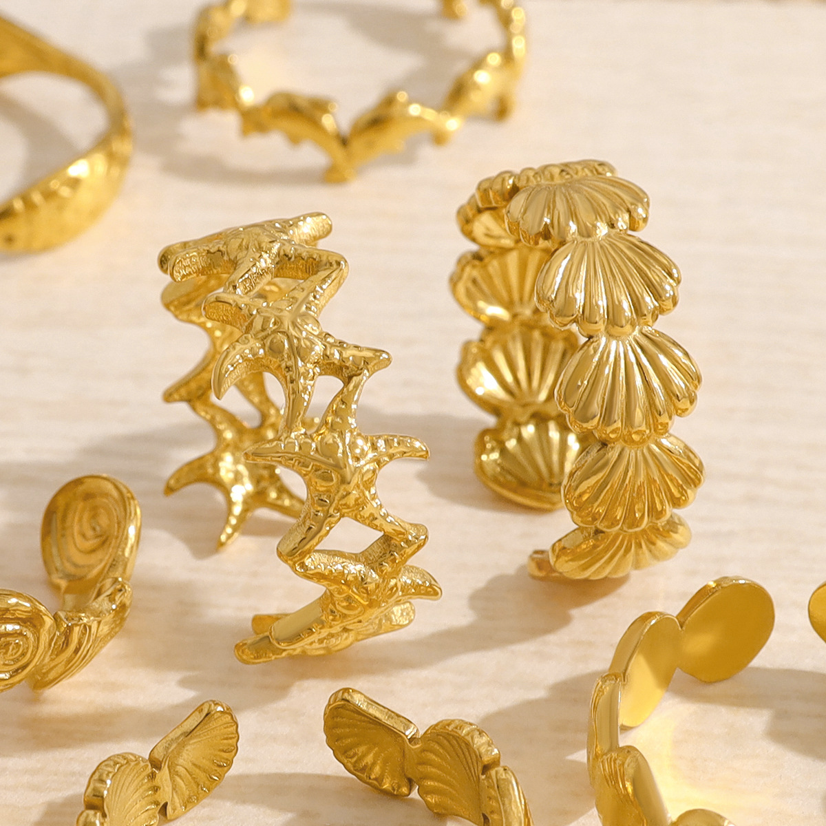 Acier inoxydable 304 Cuff Bague, Plaqué or 18K, bijoux de mode & styles différents pour le choix & pour femme, Vendu par PC