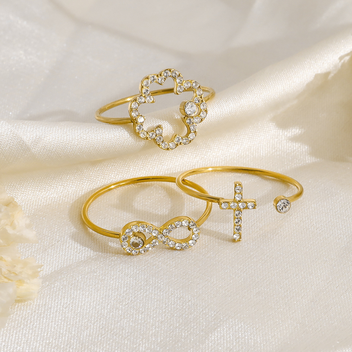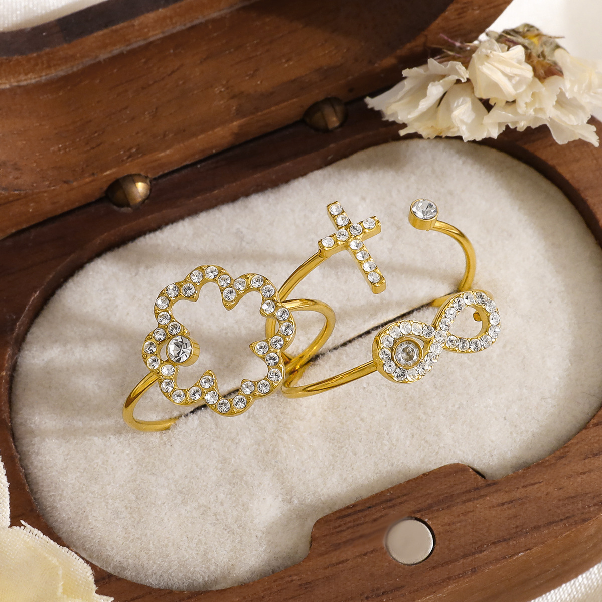 Acier inoxydable 304 Cuff Bague, avec cristal, Placage, styles différents pour le choix & pour femme & creux, plus de couleurs à choisir, Vendu par PC