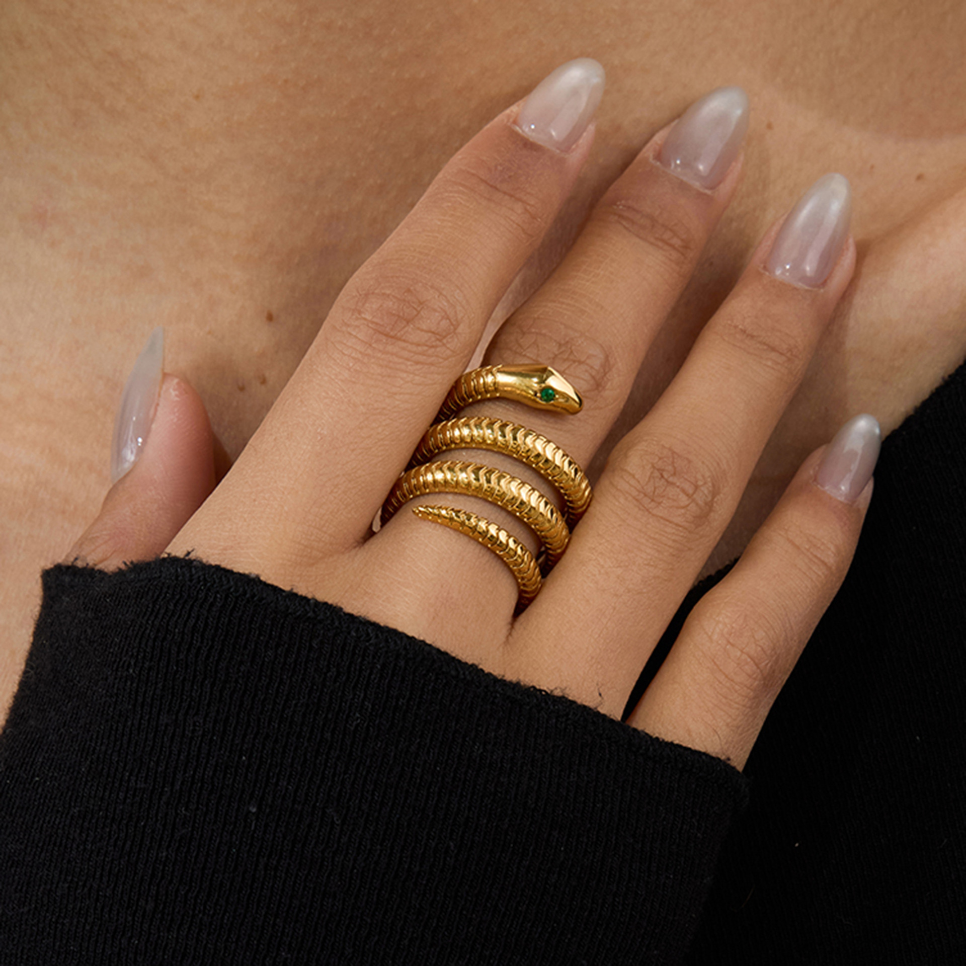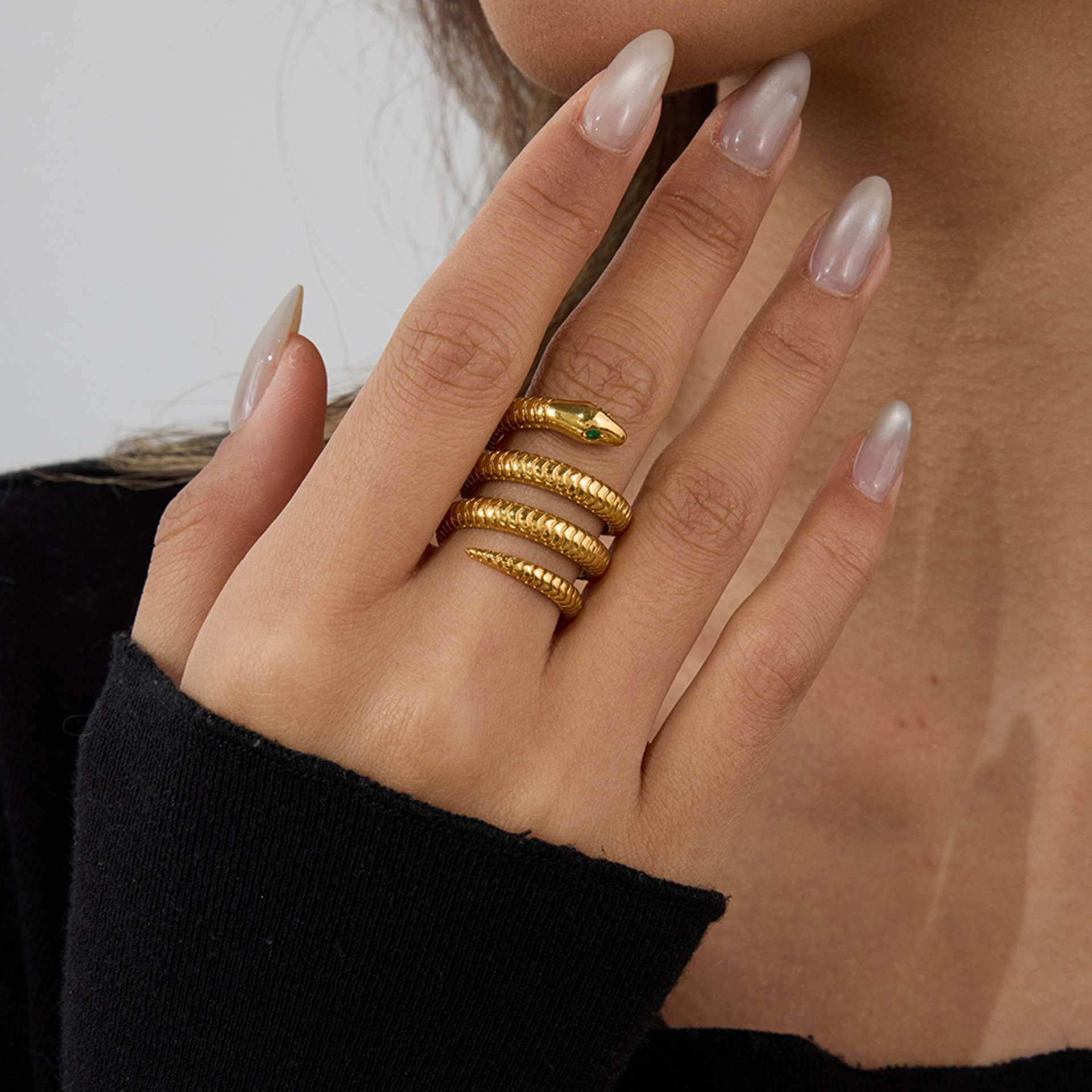Acier inoxydable 304 Cuff Bague, serpent, Plaqué or 18K, multicouche & normes différentes pour le choix & pavé de micro zircon & pour femme, Vendu par PC