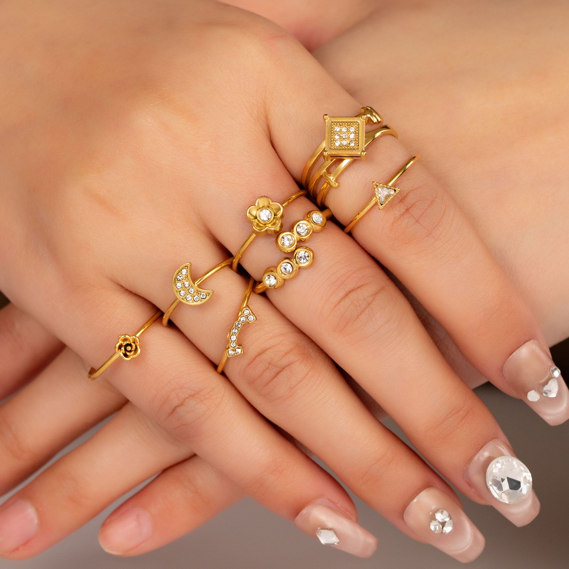 Acier inoxydable 304 Cuff Bague, Placage de couleur d'or, styles différents pour le choix & pour femme & avec strass, Vendu par PC