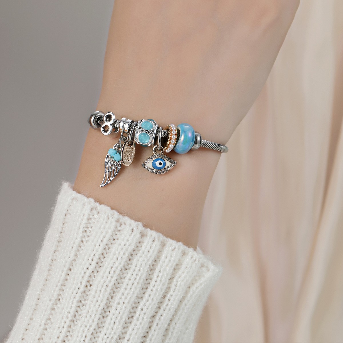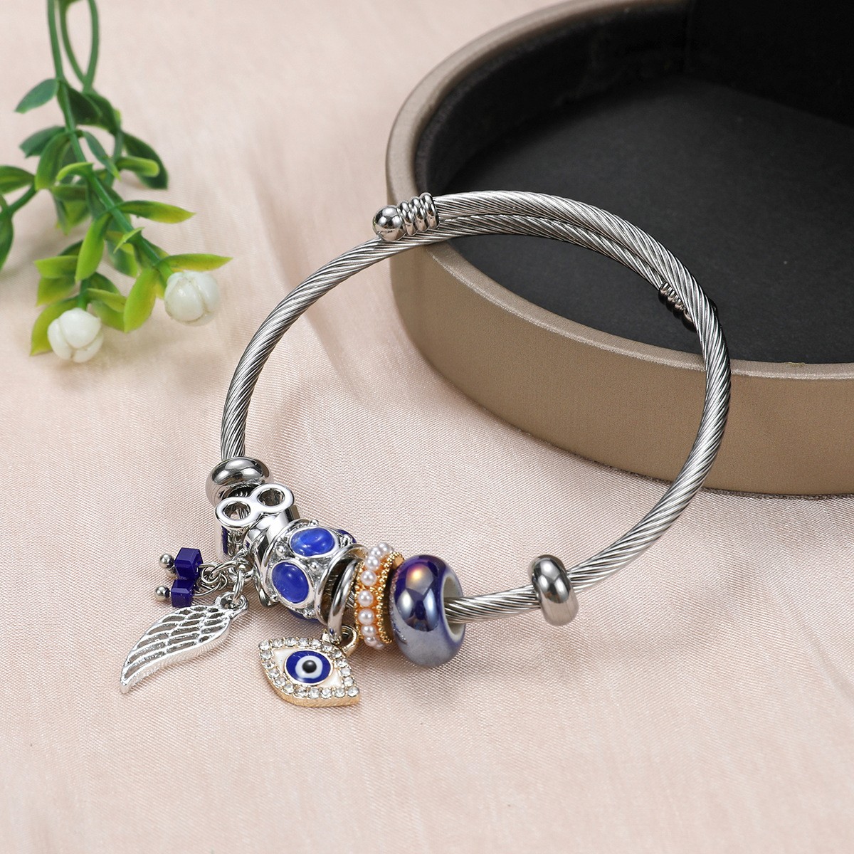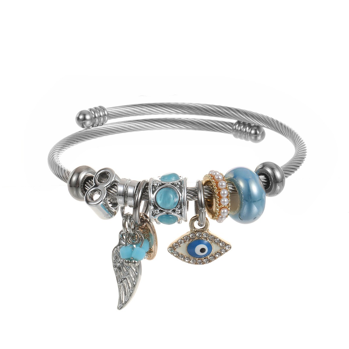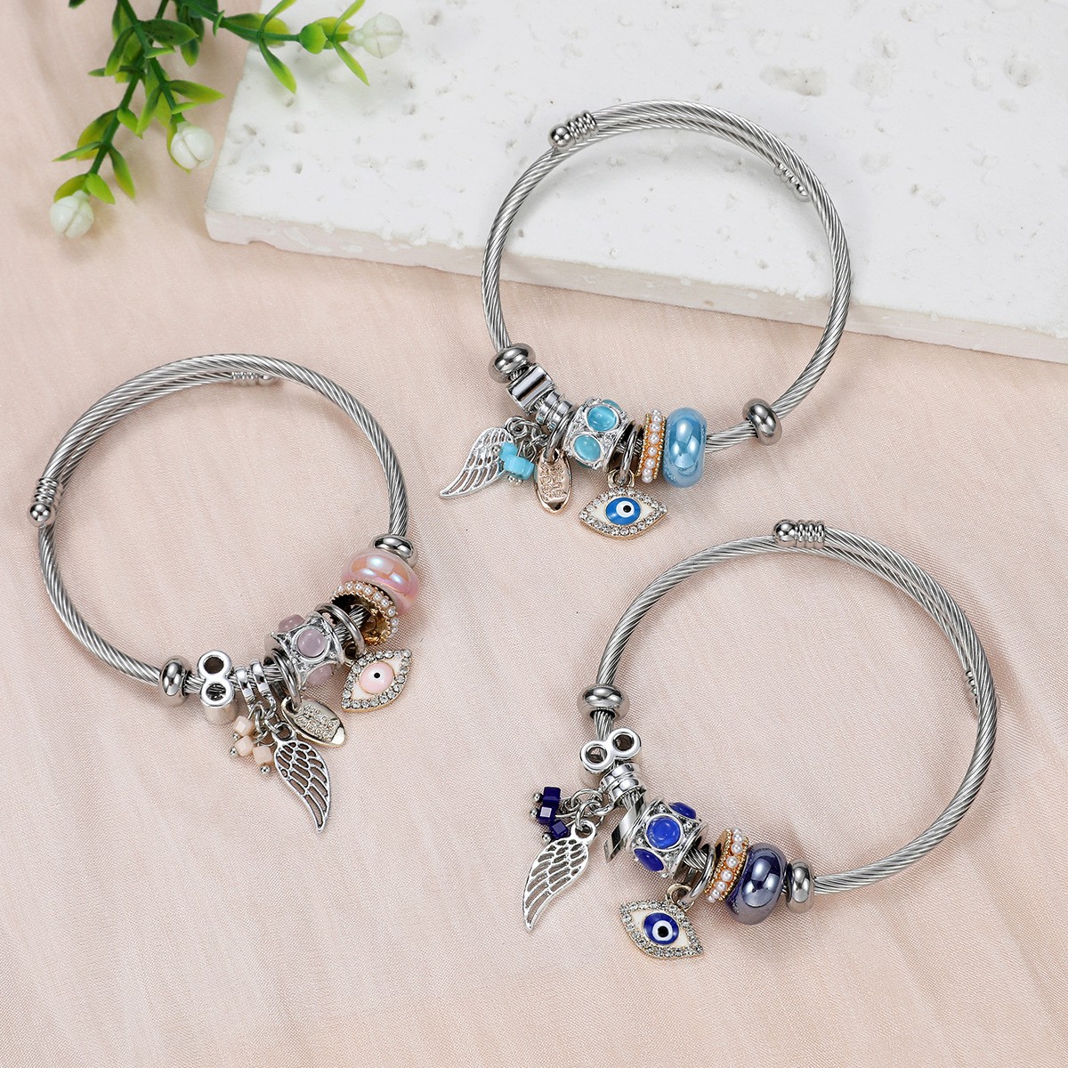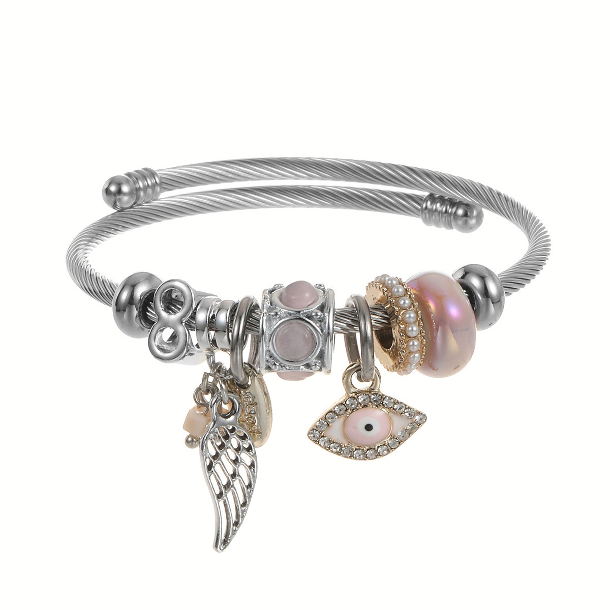 Acier inoxydable 304 Cuff Bracelet européenne, avec perle de plastique & alliage de zinc, Placage, bijoux de mode & pour femme & avec strass, plus de couleurs à choisir, The diameter is approximately 5.5CM, Vendu par PC