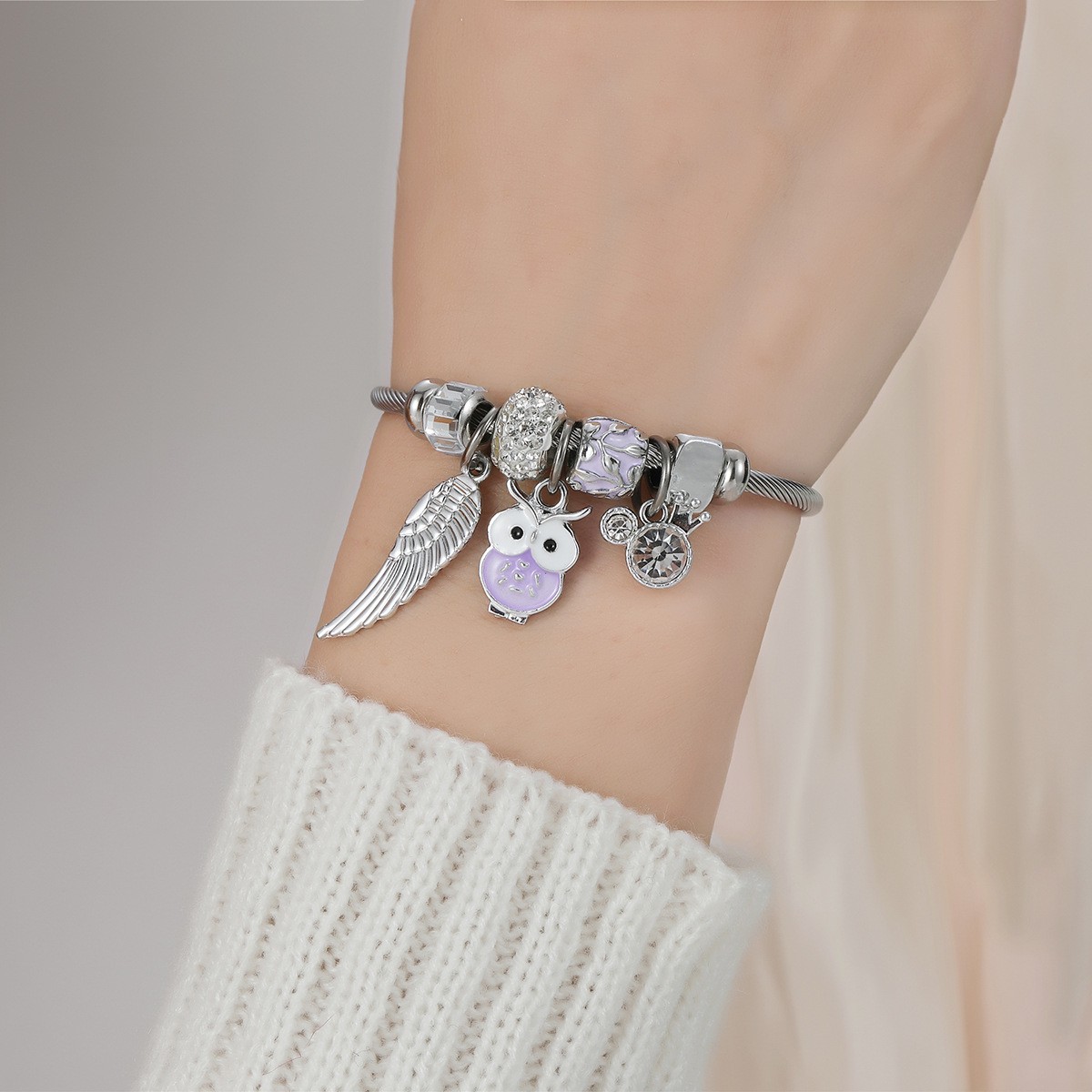 Acier inoxydable 304 Cuff Bracelet européenne, avec alliage de zinc, Placage, bijoux de mode & pour femme & avec strass, The diameter is approximately 5.5CM, Vendu par PC