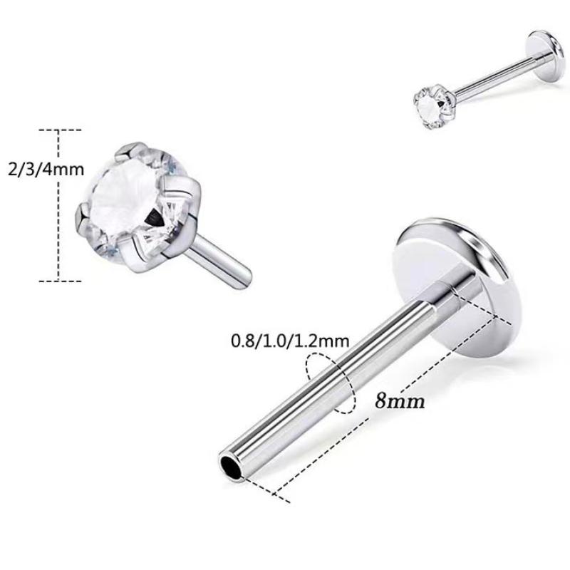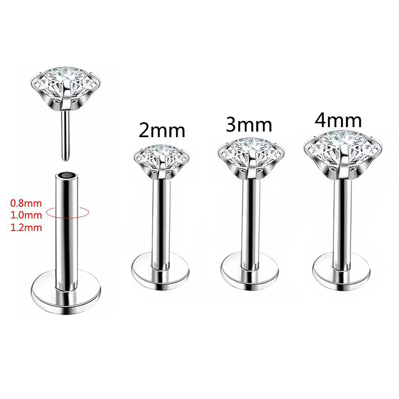 Acier inoxydable 304 Goujons perforés pour les lèvres, unisexe & normes différentes pour le choix & styles différents pour le choix & pavé de micro zircon, Vendu par PC