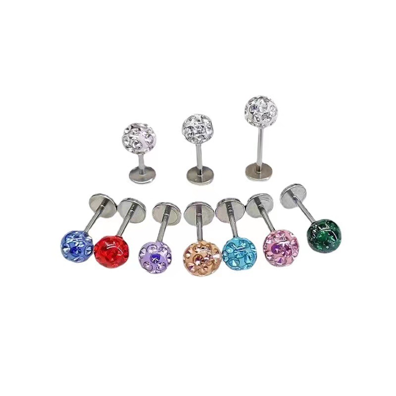 Acier inoxydable 304 Goujons perforés pour les lèvres, unisexe & normes différentes pour le choix & avec strass, couleurs mélangées, Vendu par PC