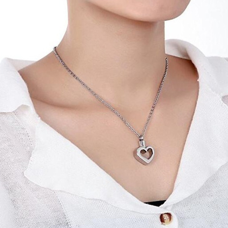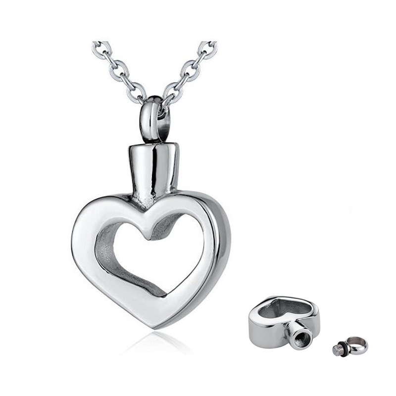 Acier inoxydable 304 Pendentif cercueil cinéraires, coeur, Placage de couleur argentée, DIY, argent, 25x20x6mm, Vendu par PC
