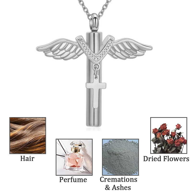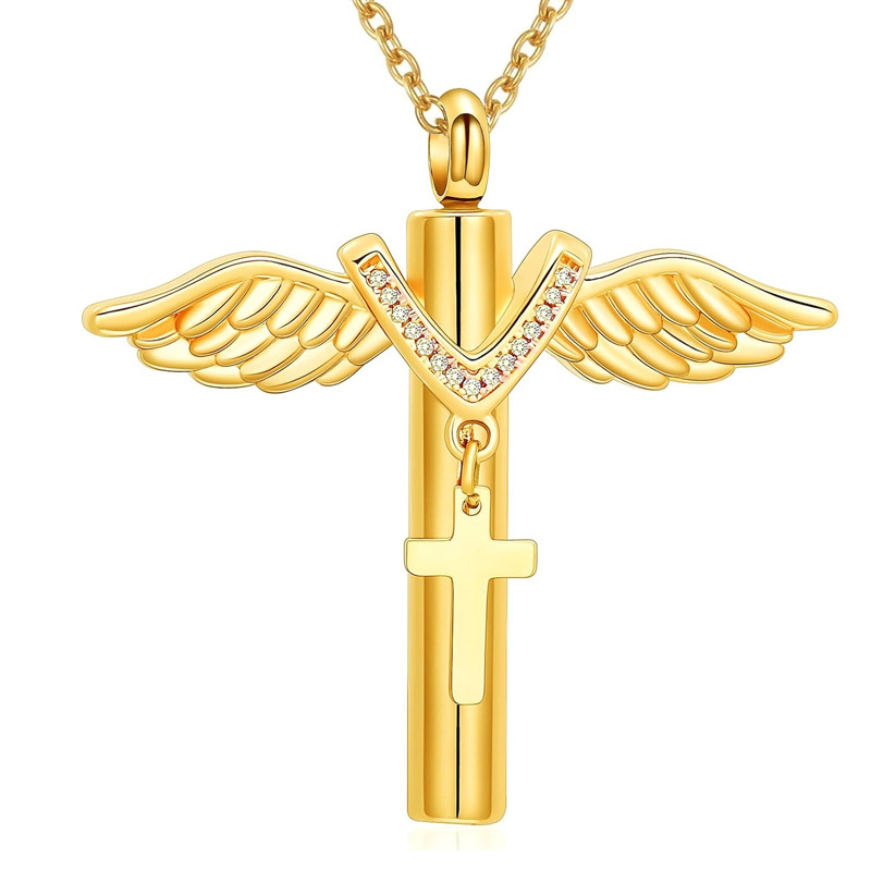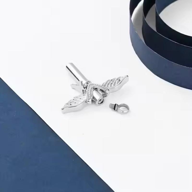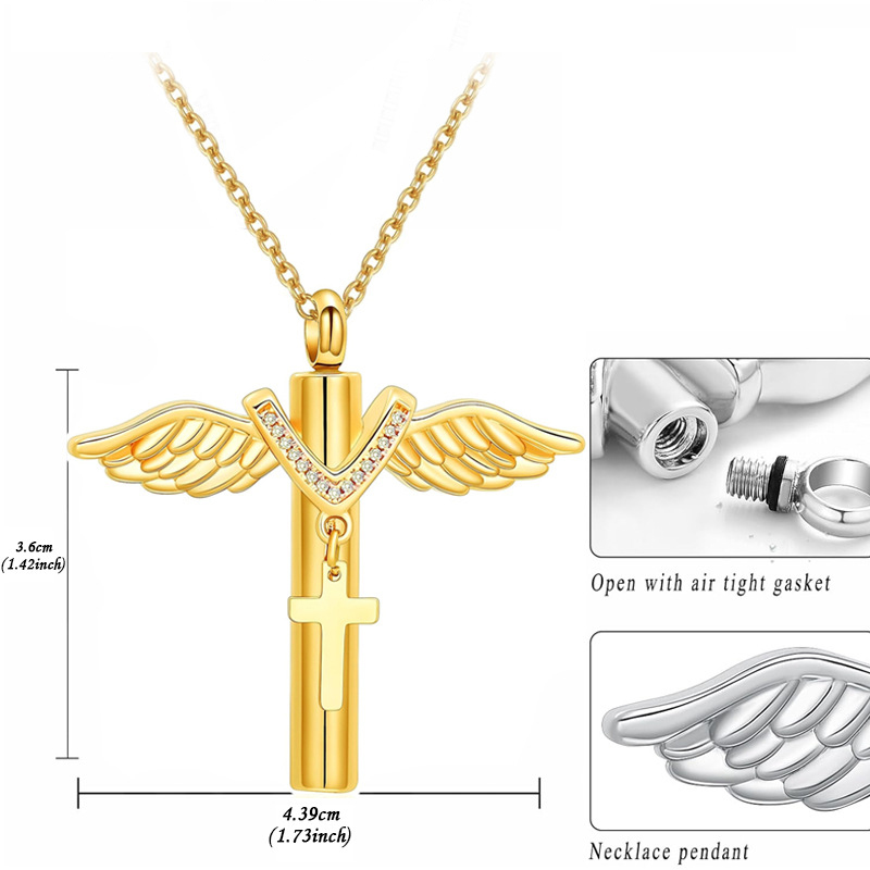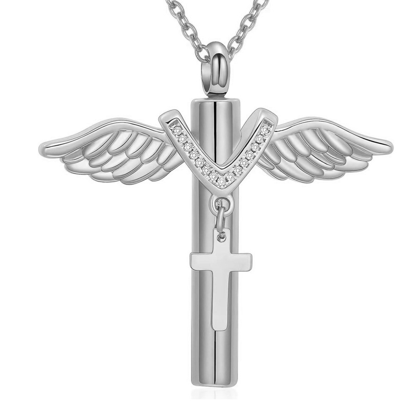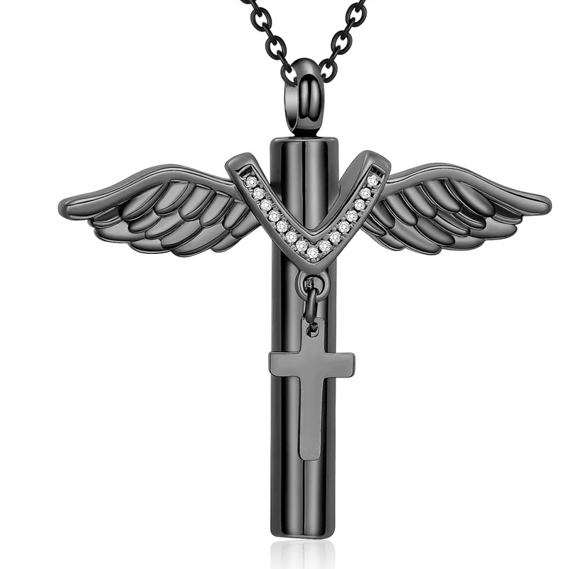 Cinéraire Casket Pendentif, acier inoxydable, La Croix avec les ailes, noircir Environ 4mm, Vendu par PC