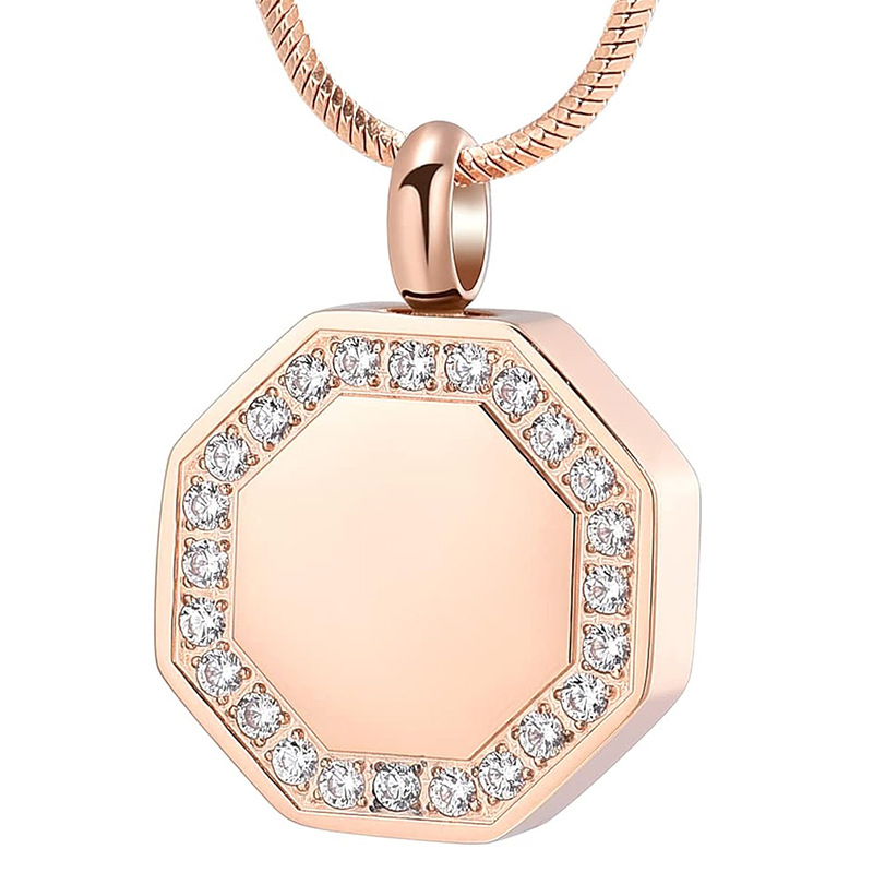 Acier inoxydable 304 Pendentif cercueil cinéraires, hexagone, Placage, peut s’ouvrir et mettre dans quelque chose & unisexe & avec strass, plus de couleurs à choisir, Vendu par PC