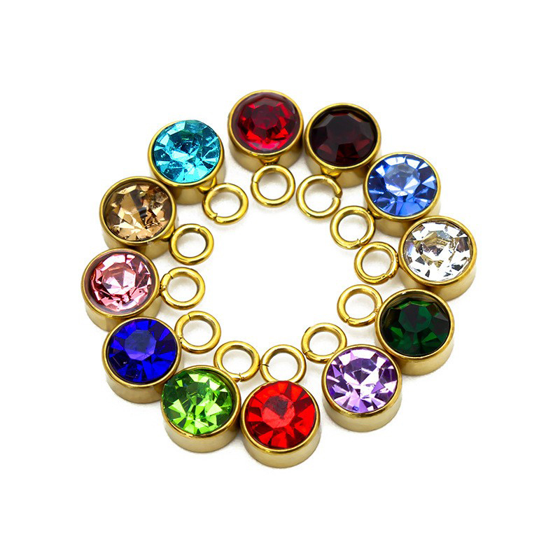 Pendentifs en acier inoxydable zircons cubiques, Acier inoxydable 316, Plat rond, avec zircone cubique Environ Vendu par PC