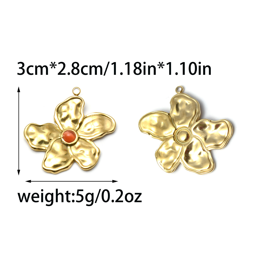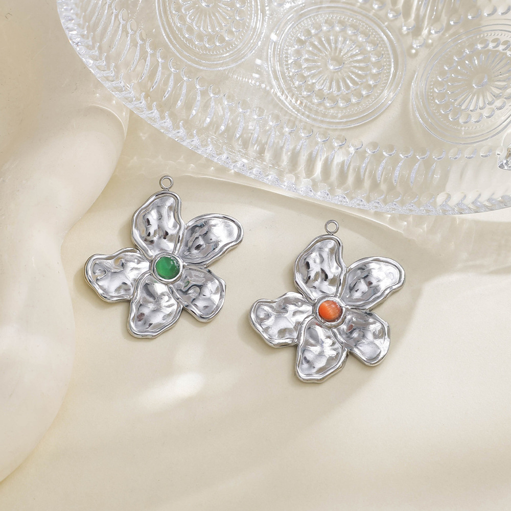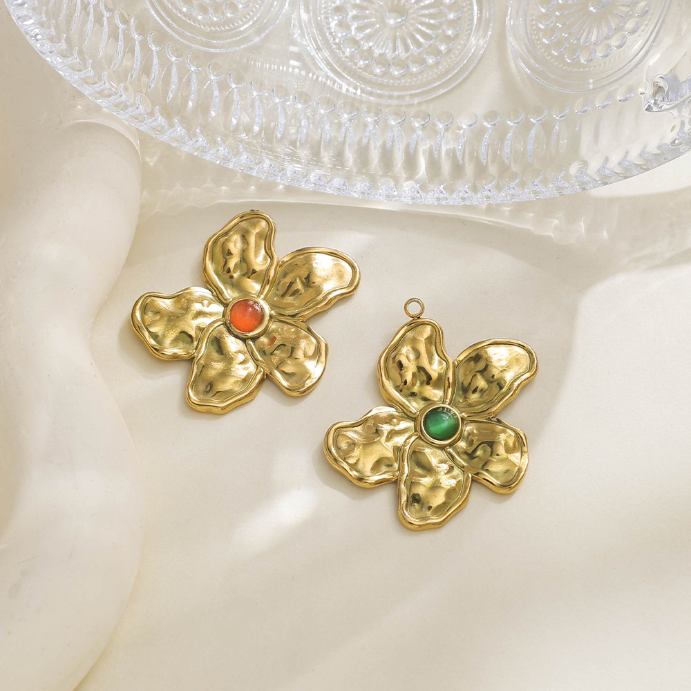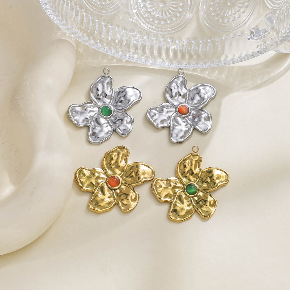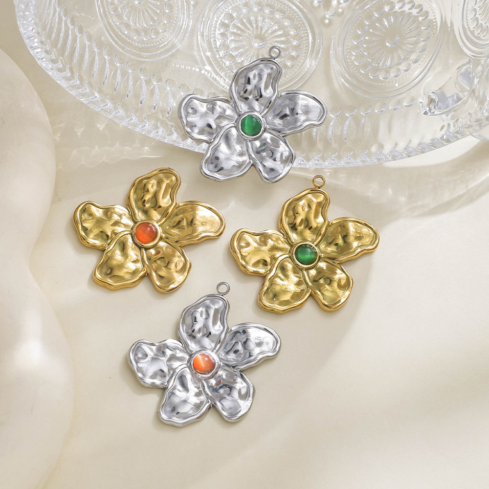 Acier inoxydable 304 Pendentif, avec pierre gemme, fleur, Placage de couleur d'or, DIY, plus de couleurs à choisir, protéger l'environnement, sans nickel, plomb et cadmium, 10PC/sac, Vendu par sac