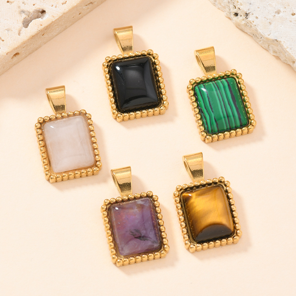 Acier inoxydable 304 Pendentif, avec Pierre naturelle, rectangle, Placage de couleur d'or, DIY, plus de couleurs à choisir, Vendu par PC