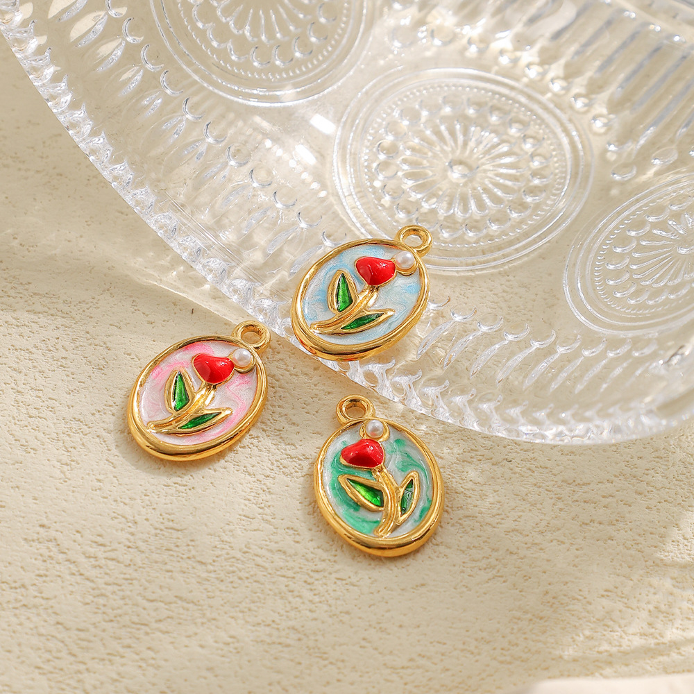 Acier inoxydable 304 Pendentif, avec perle de plastique, Tulip, Placage de couleur d'or, DIY & émail, plus de couleurs à choisir, protéger l'environnement, sans nickel, plomb et cadmium, 10PC/sac, Vendu par sac