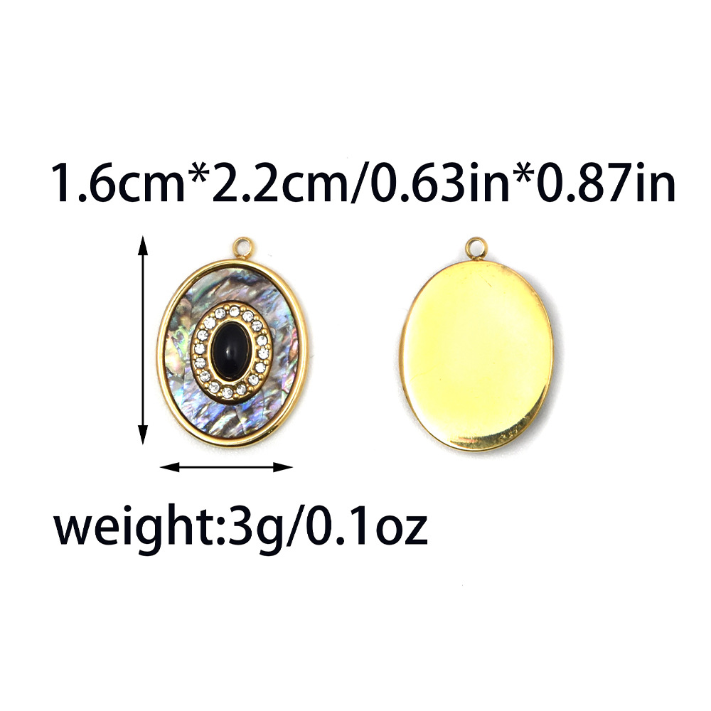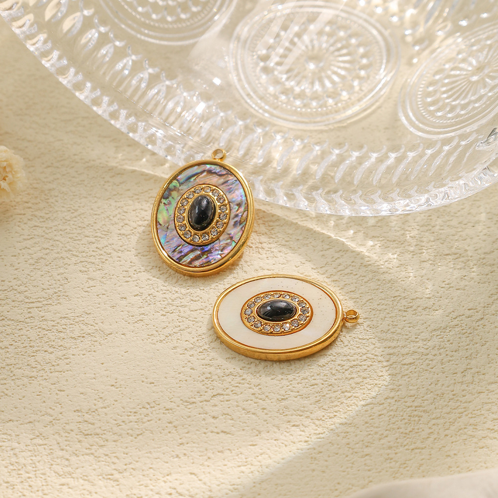 Acier inoxydable 304 Pendentif, avec pierre gemme & coquille blanche, ellipse, Placage de couleur d'or, DIY & avec strass, plus de couleurs à choisir, protéger l'environnement, sans nickel, plomb et cadmium, 10PC/sac, Vendu par sac