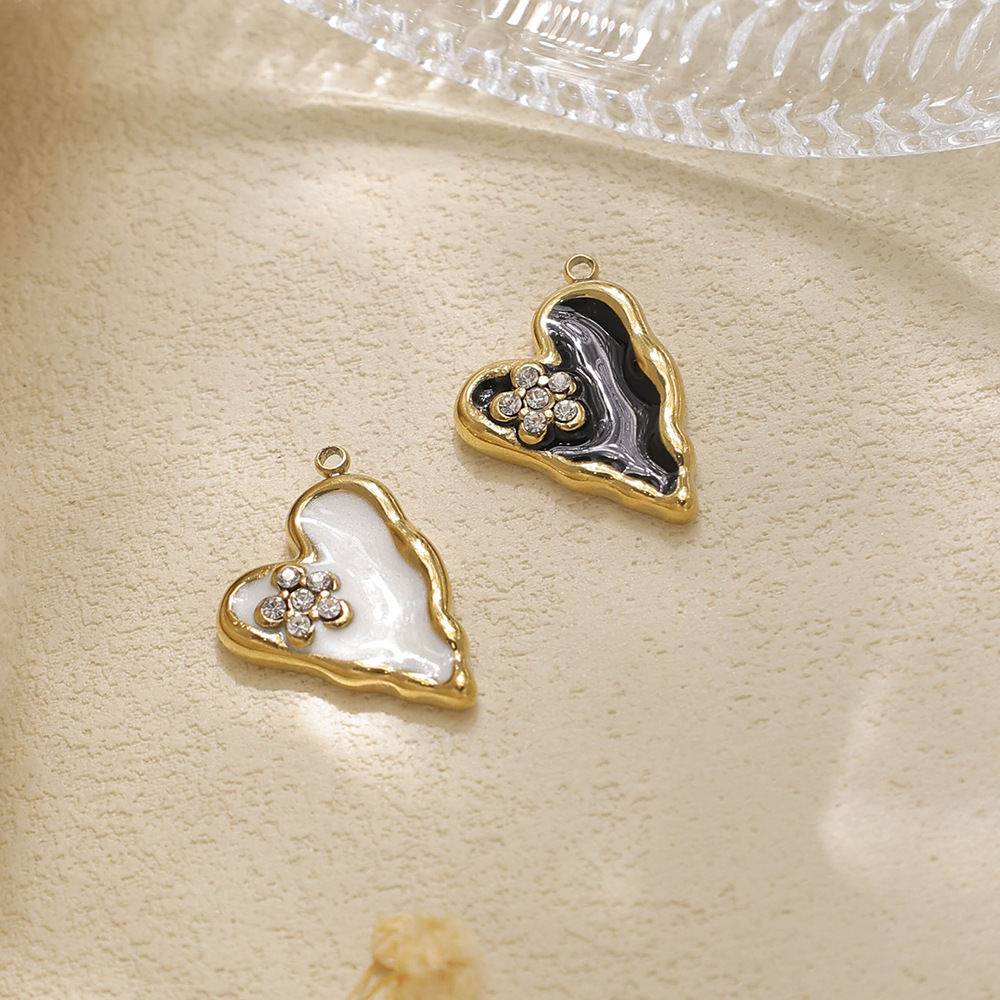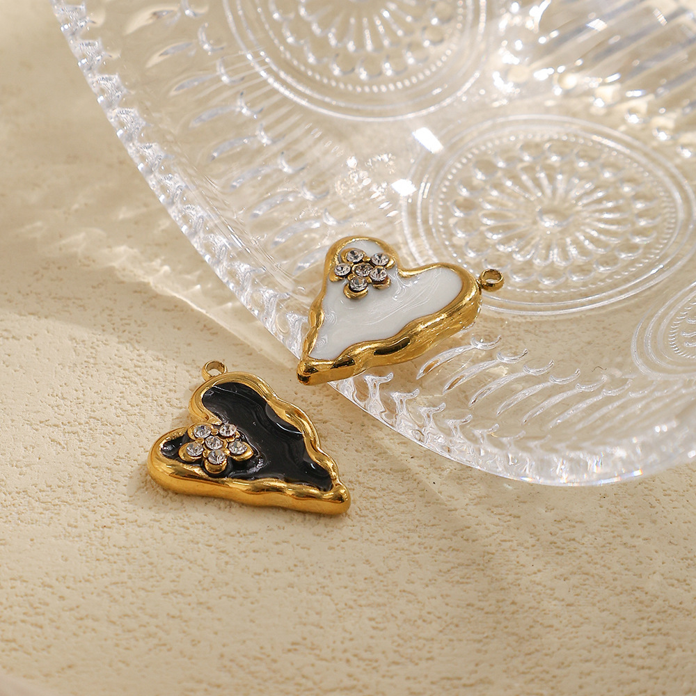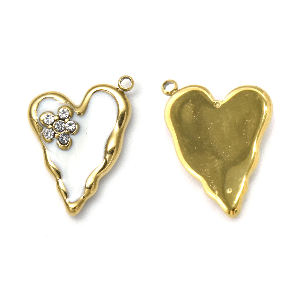 Acier inoxydable 304 Pendentif, coeur, Placage de couleur d'or, DIY & émail & avec strass, plus de couleurs à choisir, protéger l'environnement, sans nickel, plomb et cadmium, 10PC/sac, Vendu par sac