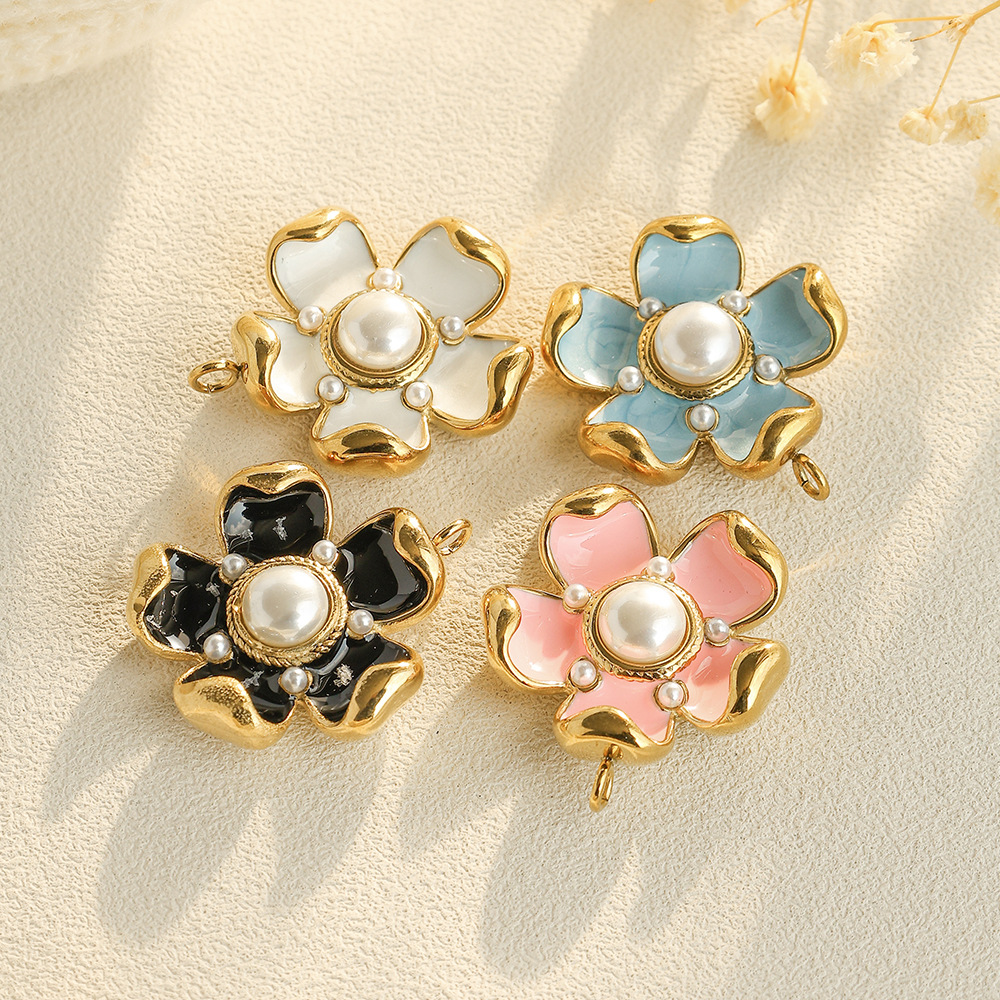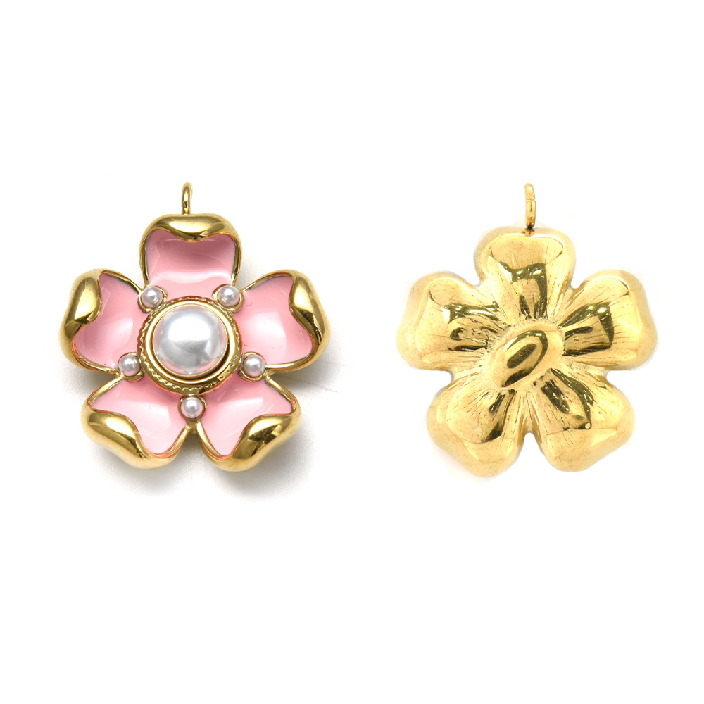 Acier inoxydable 304 Pendentif, avec perle de plastique, fleur, Placage de couleur d'or, DIY & émail, plus de couleurs à choisir, protéger l'environnement, sans nickel, plomb et cadmium, 10PC/sac, Vendu par sac
