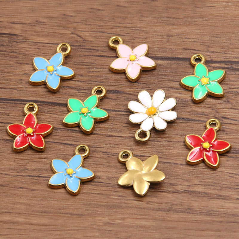 Acier inoxydable 304 Pendentif, fleur, Placage, DIY & styles différents pour le choix & émail, plus de couleurs à choisir, 10PC/sac, Vendu par sac