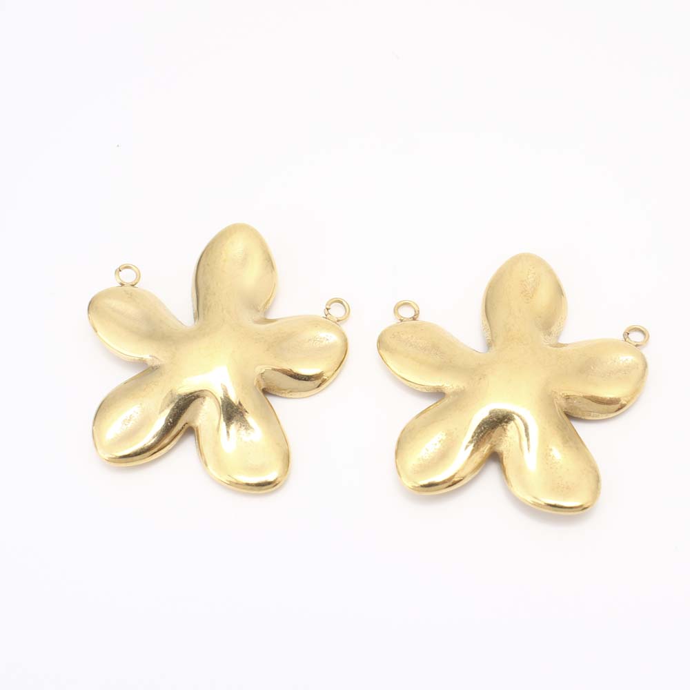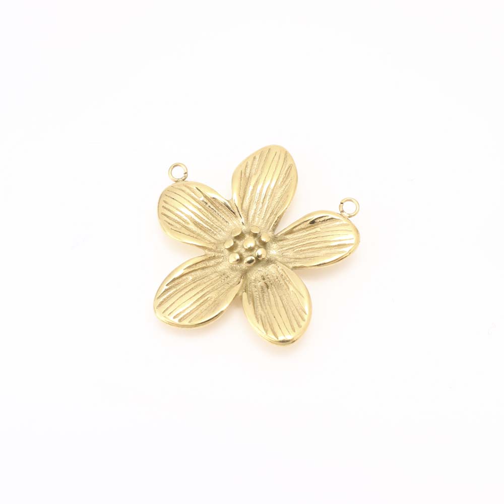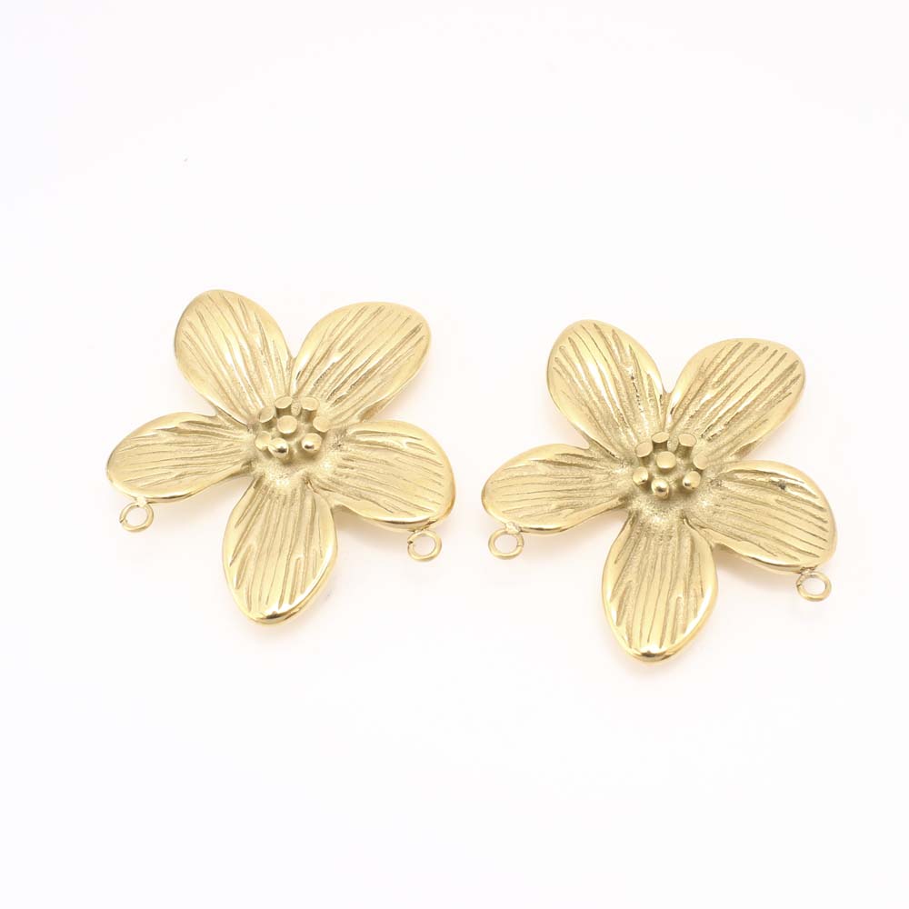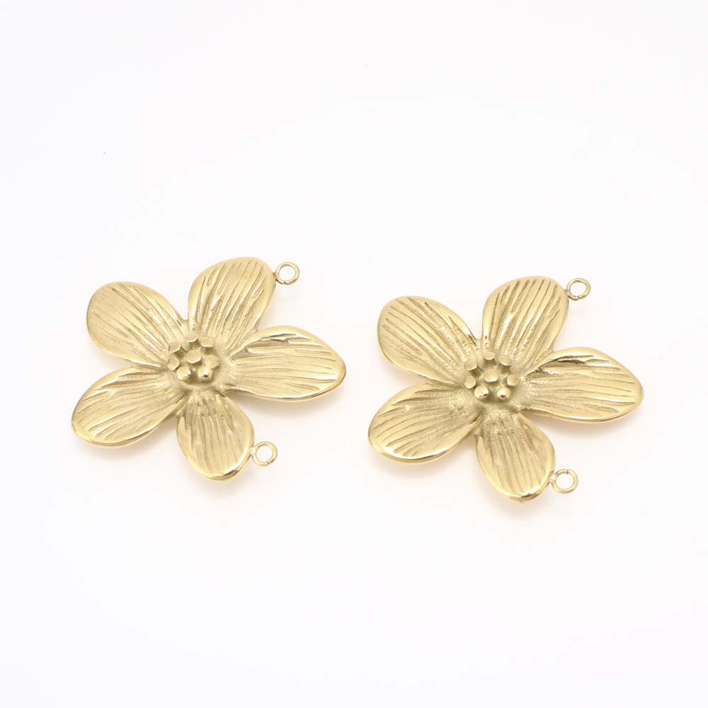 Acier inoxydable 304 Pendentif, fleur, DIY & double trou, doré, Vendu par PC