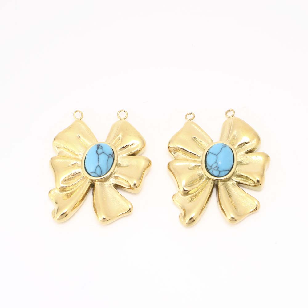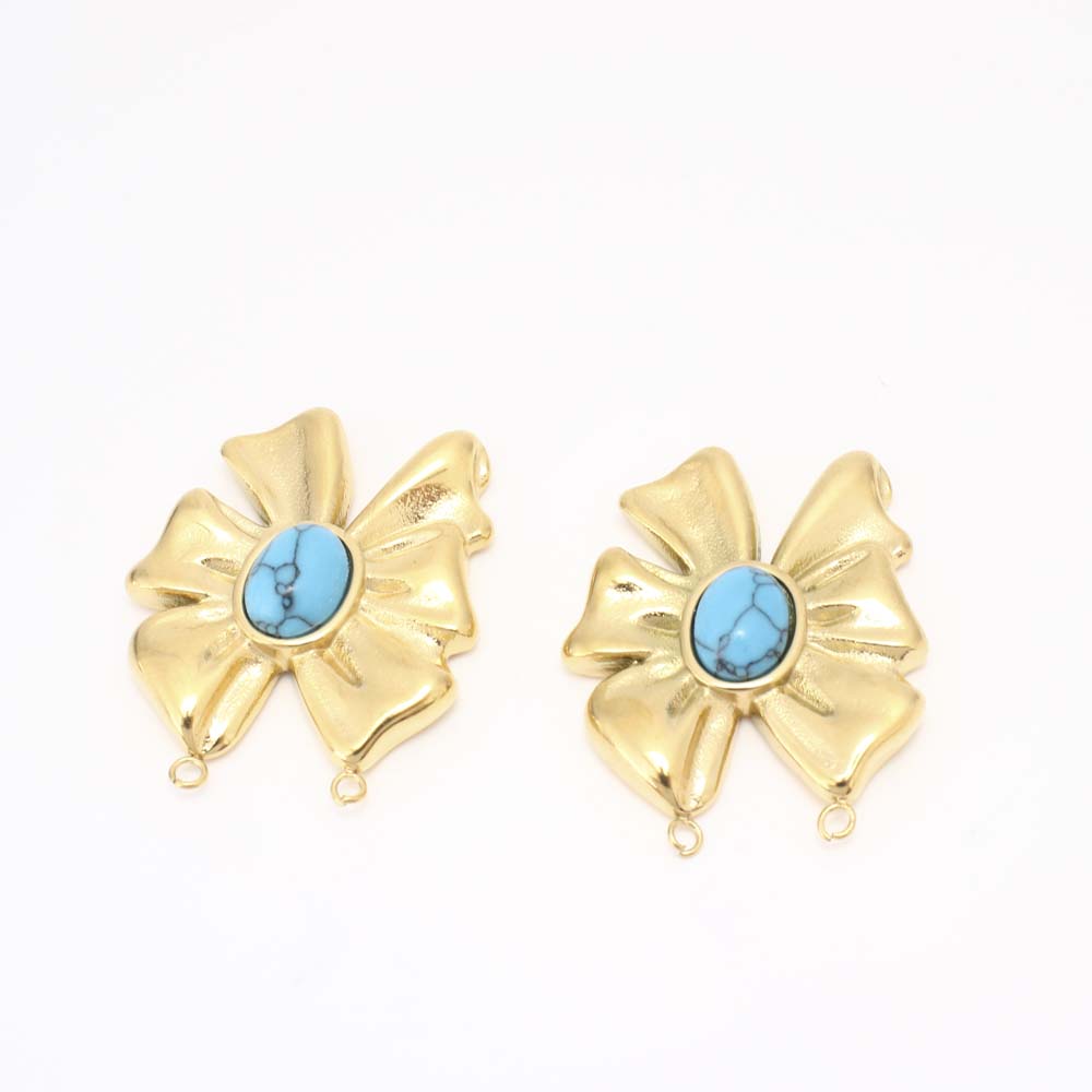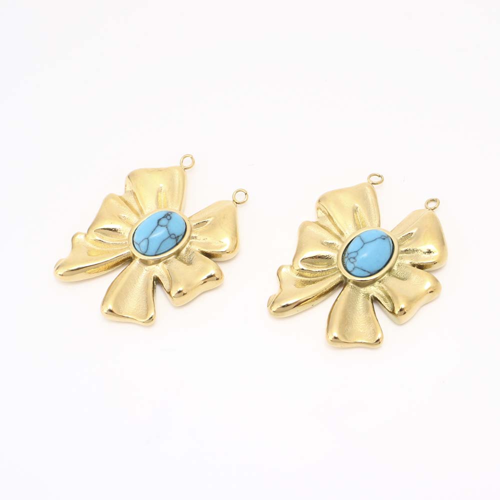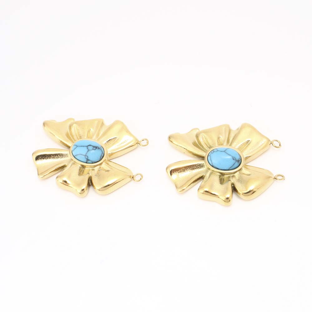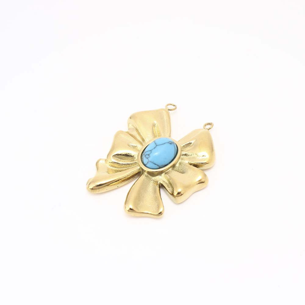Acier inoxydable 304 Pendentif, avec turquoise, DIY & double trou, doré, Vendu par PC