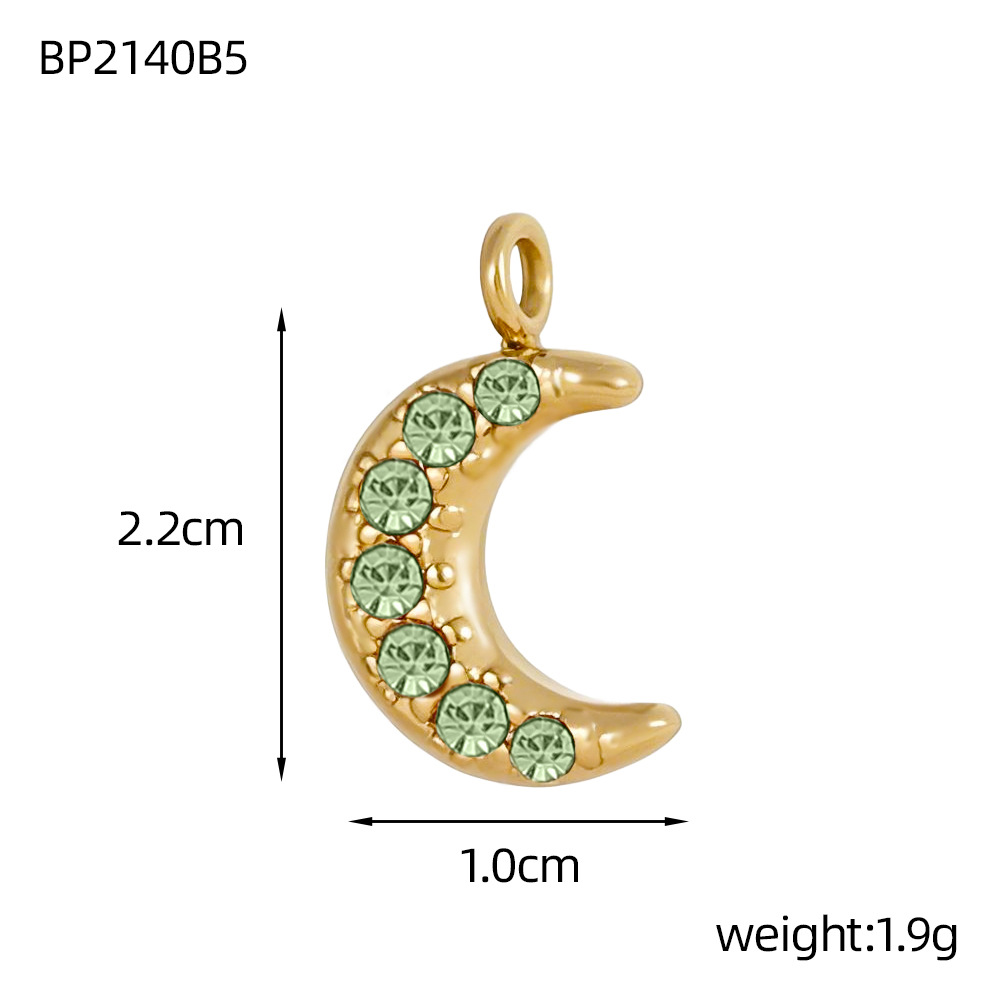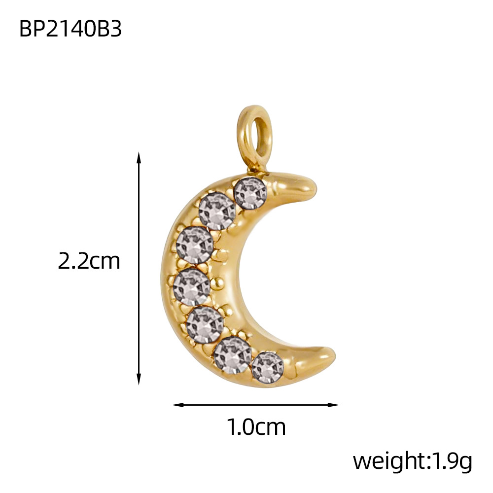 Acier inoxydable 304 Pendentif, lune, Placage de couleur d'or, DIY & pavé de micro zircon, doré, Vendu par PC