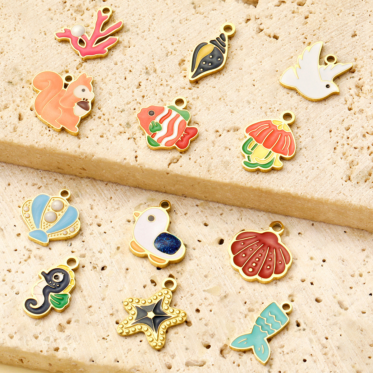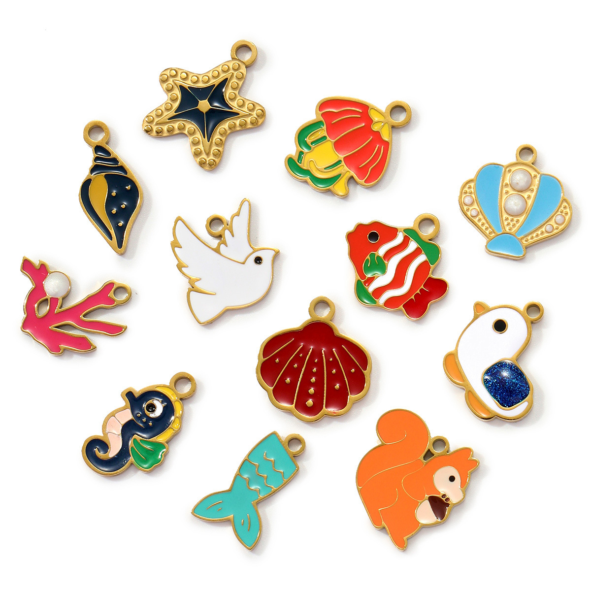 Pendentifs en acier inoxydable émail, Acier inoxydable 304, Placage de couleur d'or, DIY, plus de couleurs à choisir Vendu par sac
