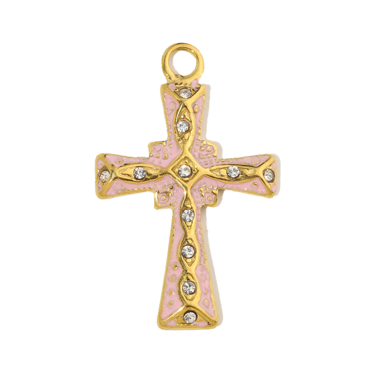 Acier inoxydable 304 Pendentif, Placage de couleur d'or, DIY & émail & avec strass, plus de couleurs à choisir, 3PC/sac, Vendu par sac