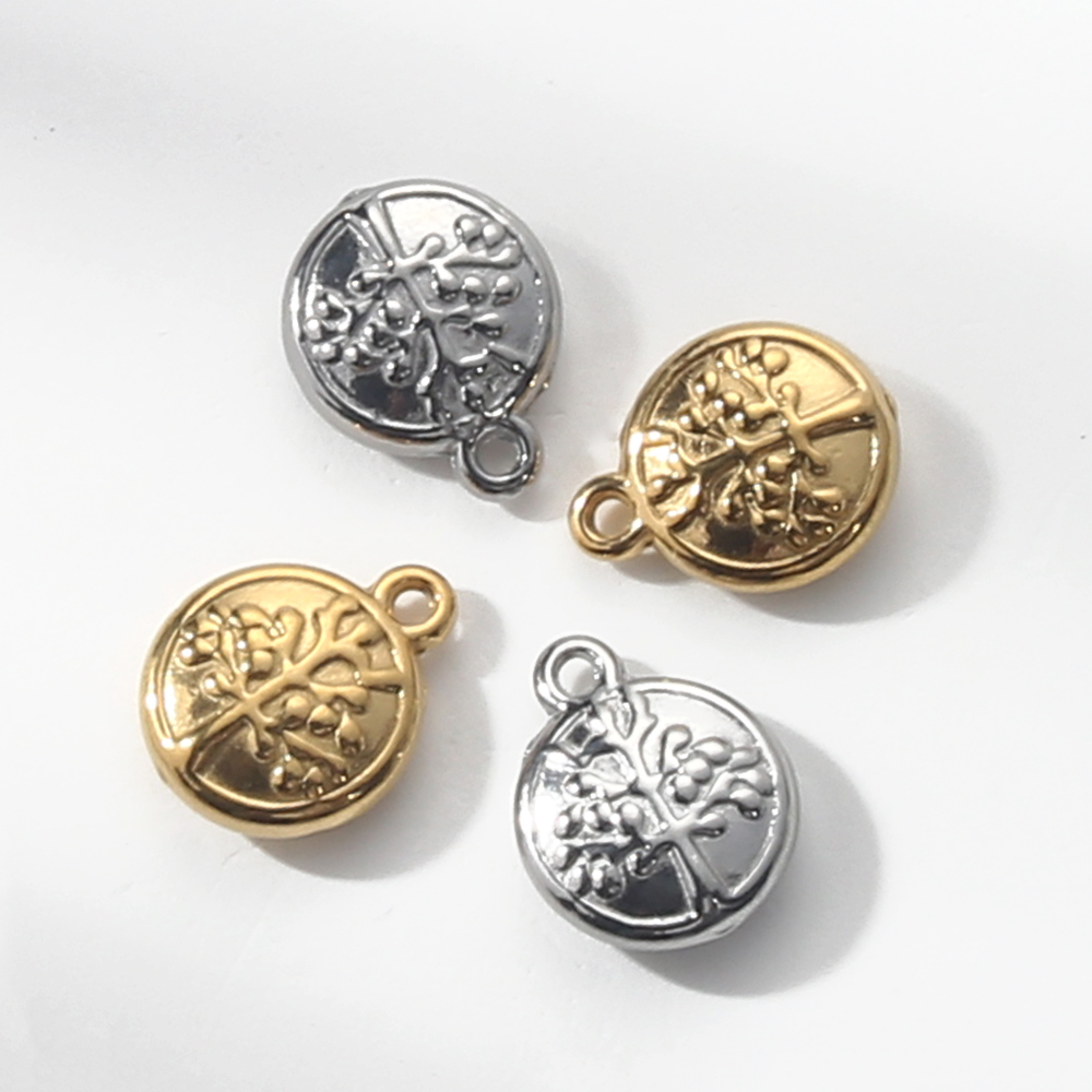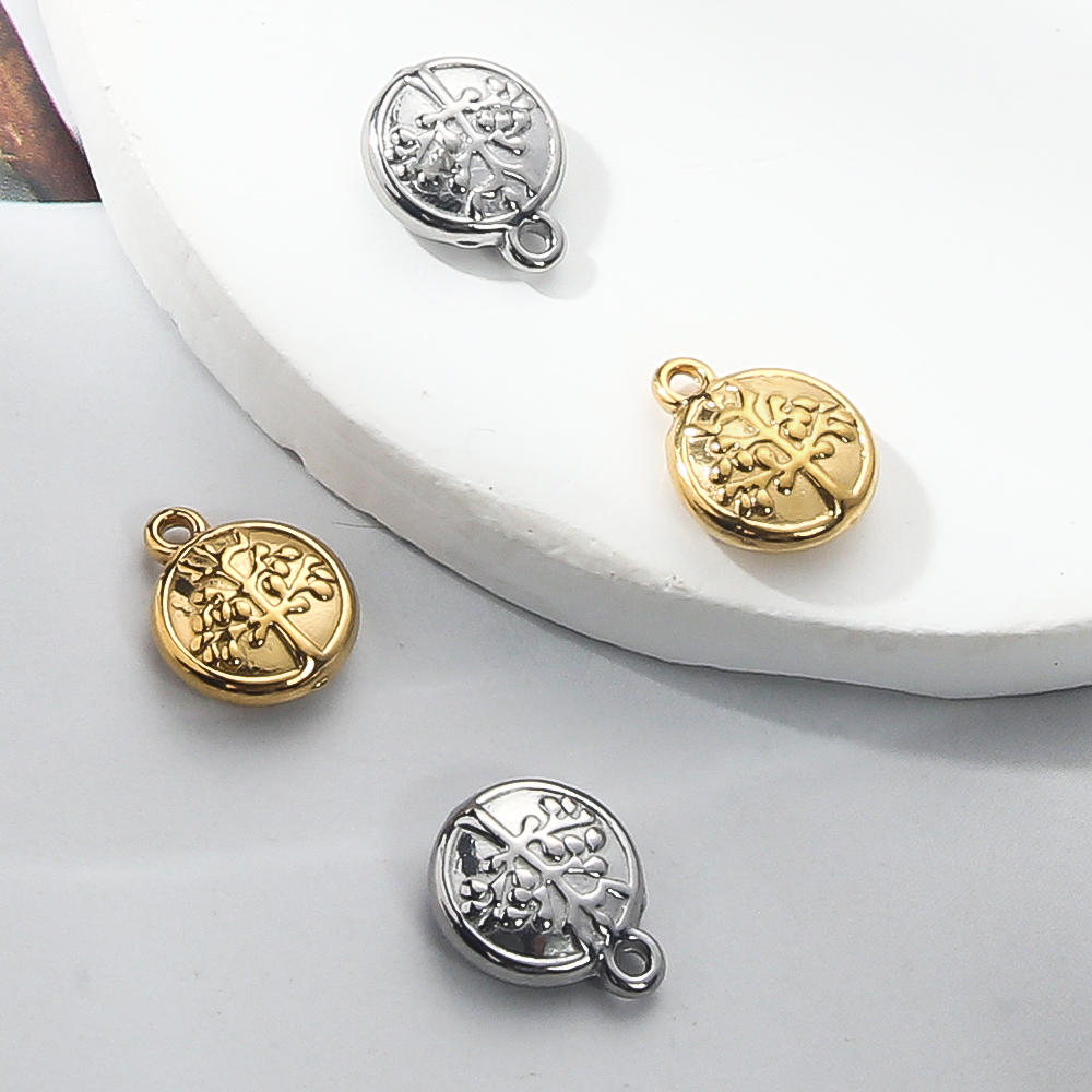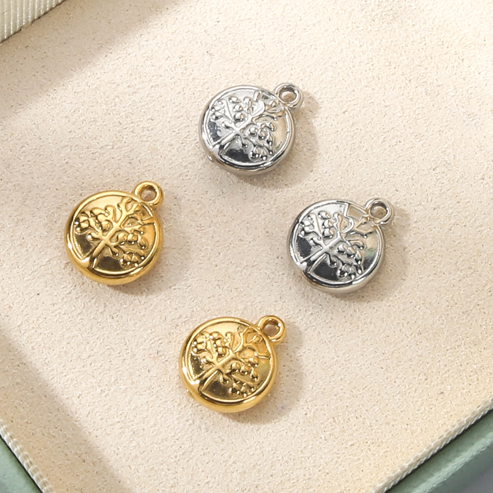Pendentifs en acier inoxydable, Rond, arbre de la conception de la vie, couleur originale Vendu par PC
