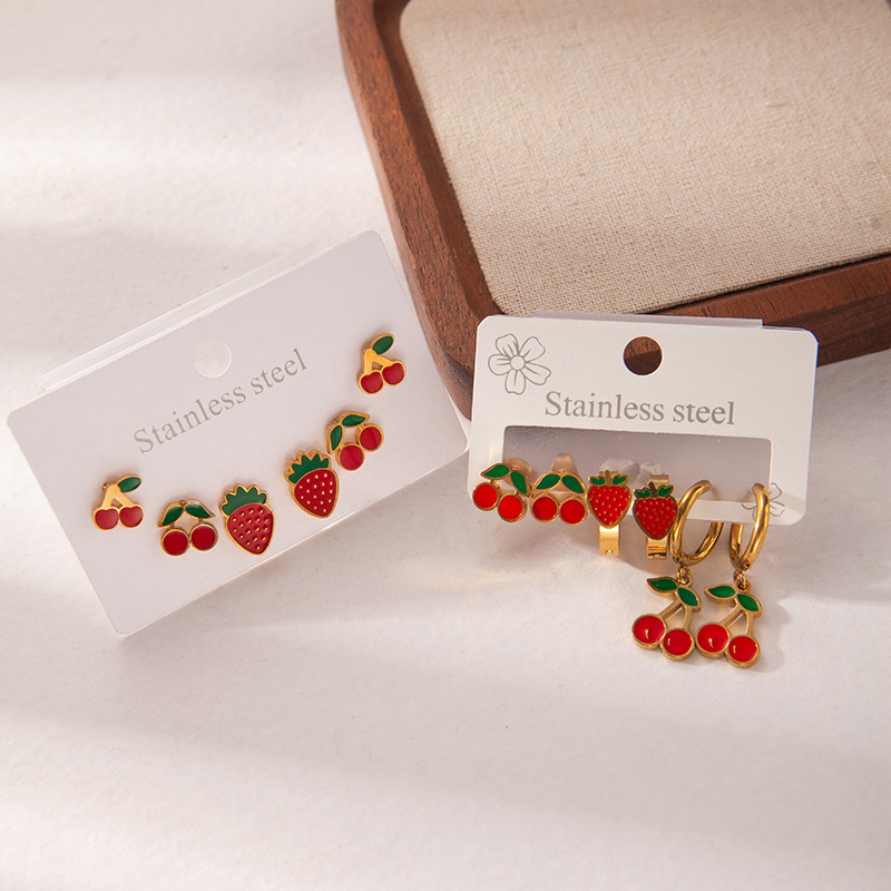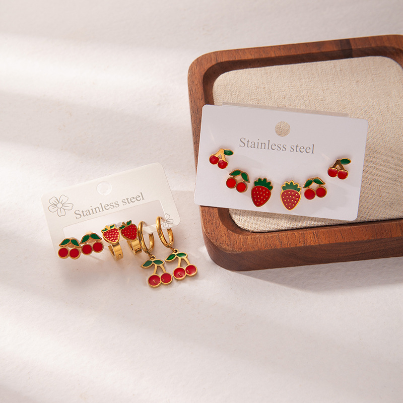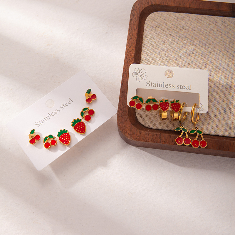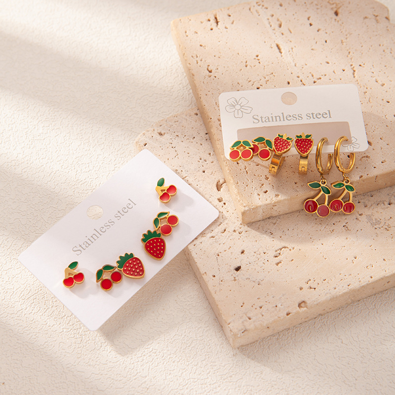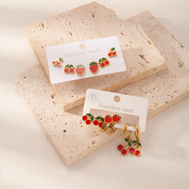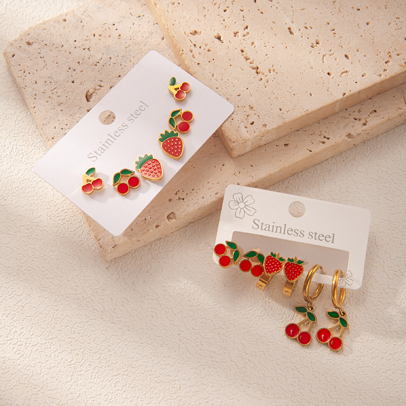 Acier inoxydable 304 Stud Set, Placage de couleur d'or, trois pièces & styles différents pour le choix & pour femme & émail, Vendu par fixé