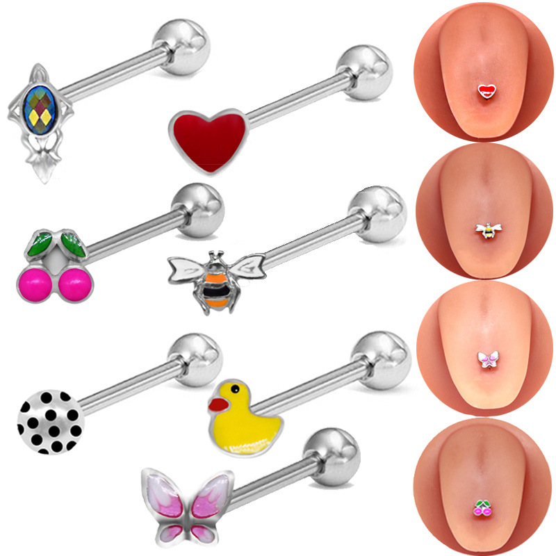 Acier inoxydable 304 anneau de langue, unisexe & styles différents pour le choix & émail & avec strass, Vendu par PC