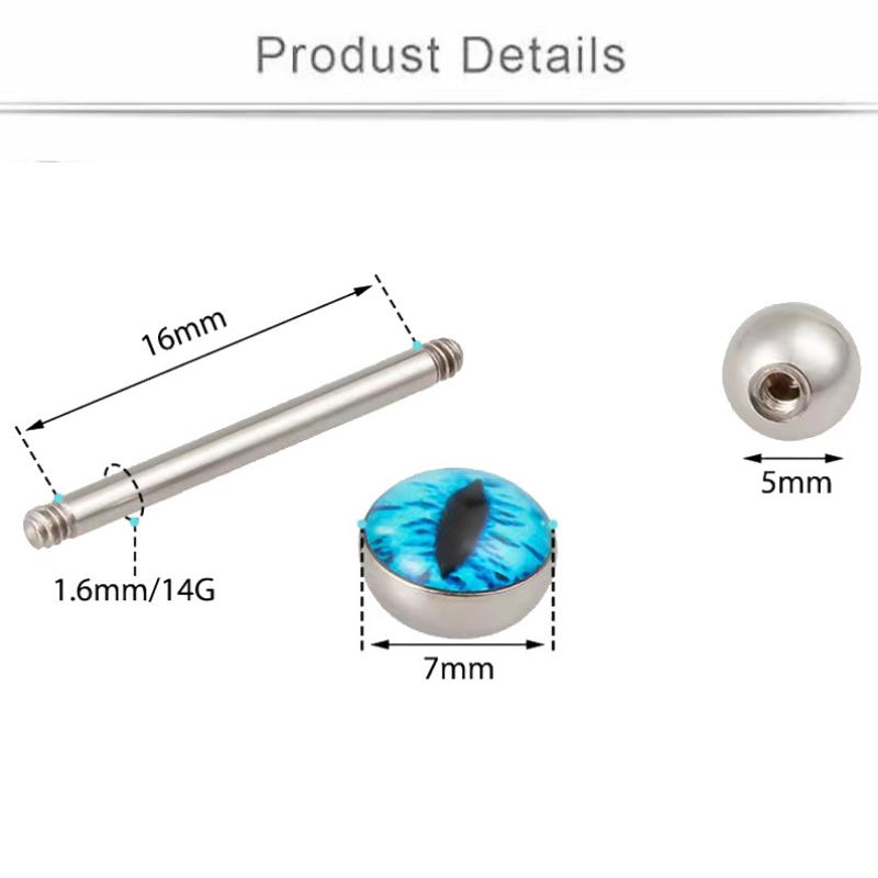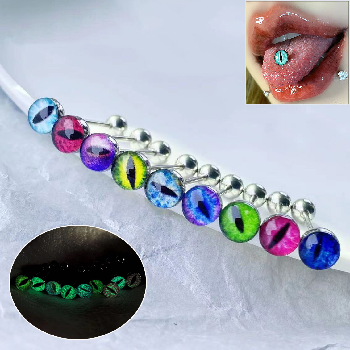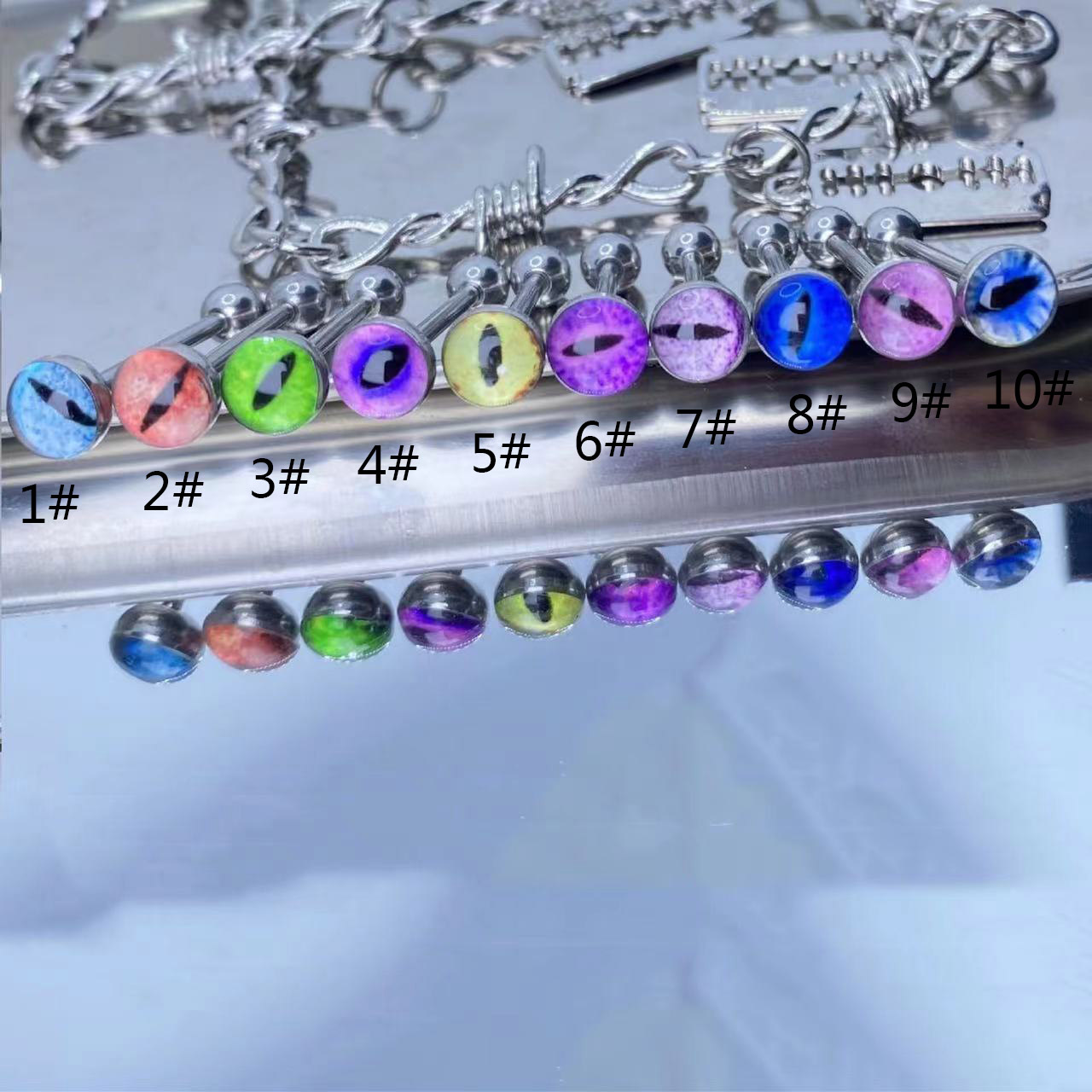 Acier inoxydable 304 anneau de langue, avec résine, Mauvais œil, poli, unisexe & lumineux, plus de couleurs à choisir, 16x7mm, Vendu par PC