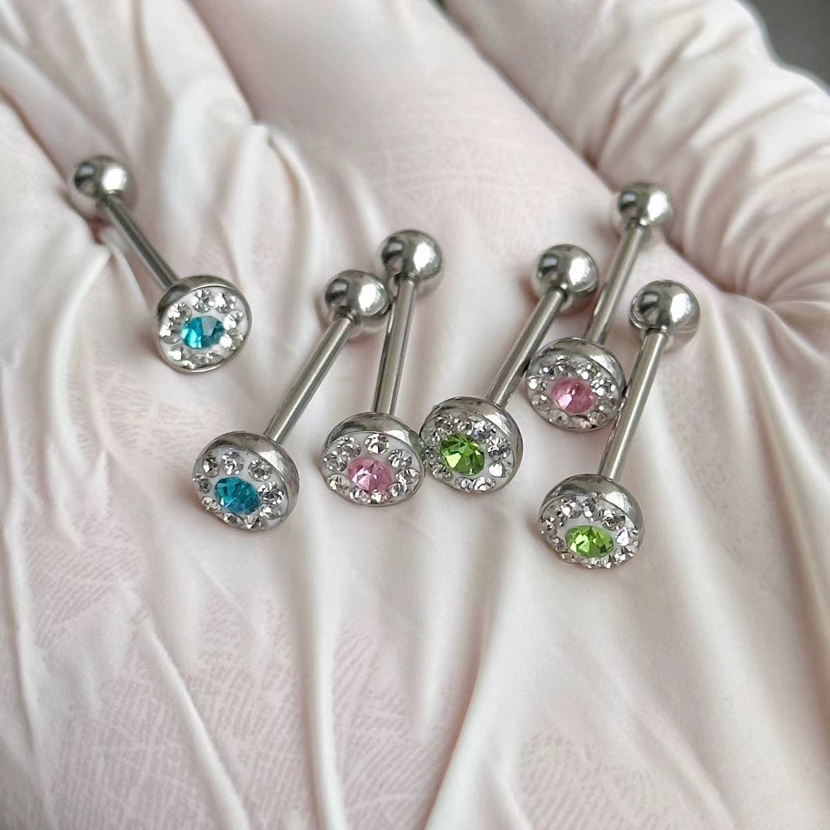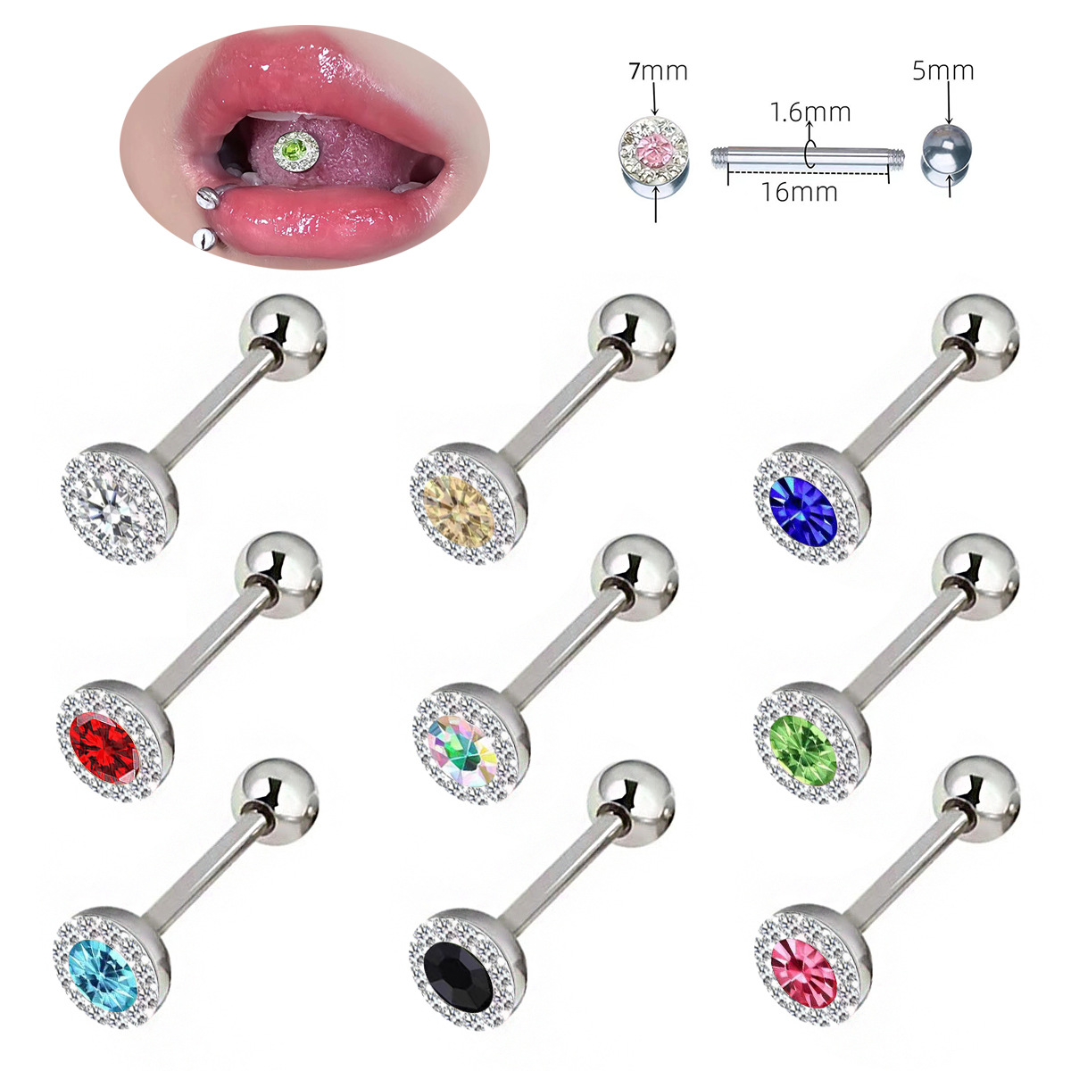 Acier inoxydable 304 anneau de langue, unisexe & avec strass, plus de couleurs à choisir, Vendu par PC