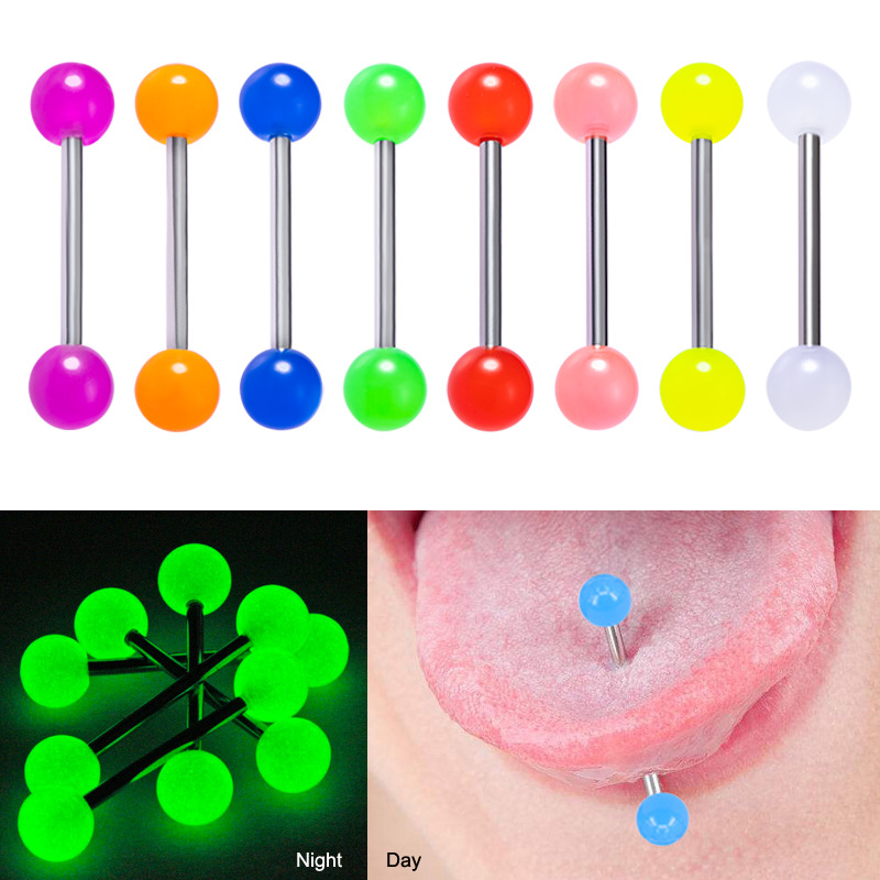 Acier inoxydable 304 anneau de langue, avec Acrylique, Rond, quantité différente pour le choix & unisexe, Couleur aléatoire, tongue ring length 11-16mm, Vendu par sac