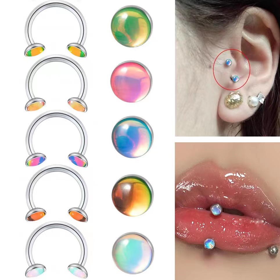 Acier inoxydable 304 anneau de lèvre, Lettre U, unisexe & émail, plus de couleurs à choisir, 1.2x8mm, Vendu par PC