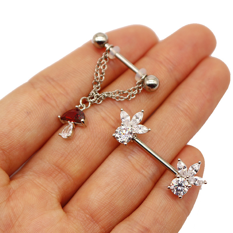 Anneau de mamelon en acier inoxydable, acier inoxydable 316L, crane, avec strass, plus de couleurs à choisir Vendu par PC