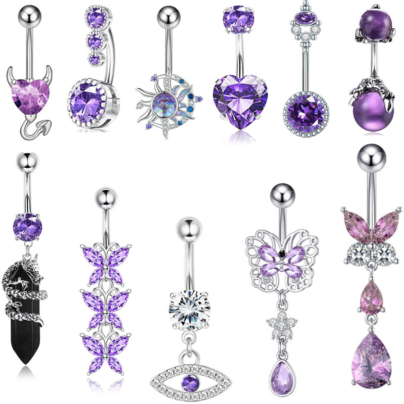 Anneau de ventre en acier inoxydable, avec zircon cubique, pour femme, Vendu par PC