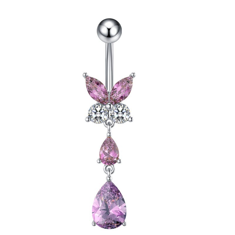 Anneau de ventre en acier inoxydable, papillon, avec strass, plus de couleurs à choisir Vendu par PC