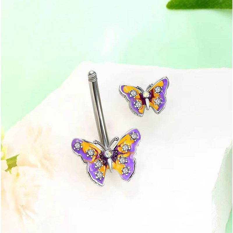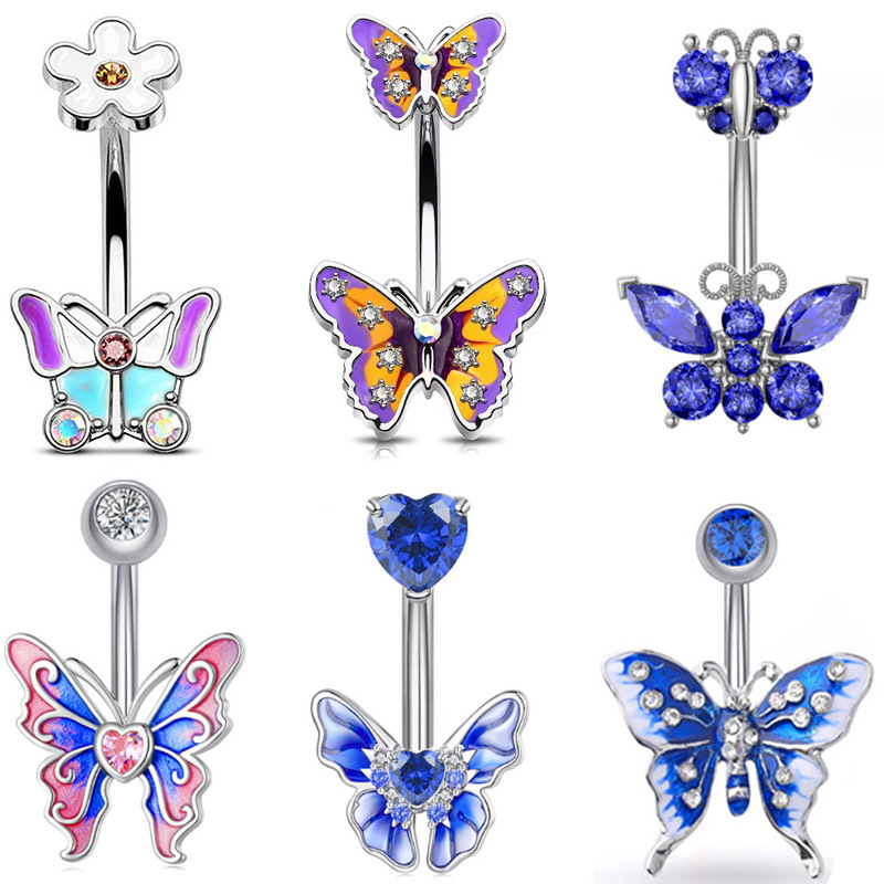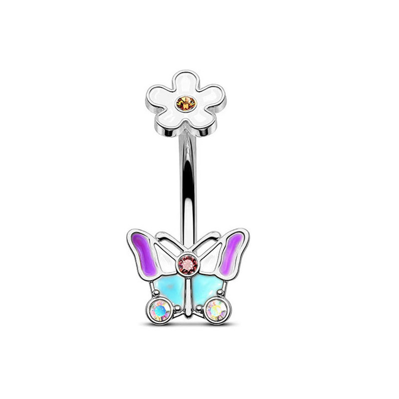 Anneau de ventre en acier inoxydable, papillon, avec strass, plus de couleurs à choisir Vendu par PC