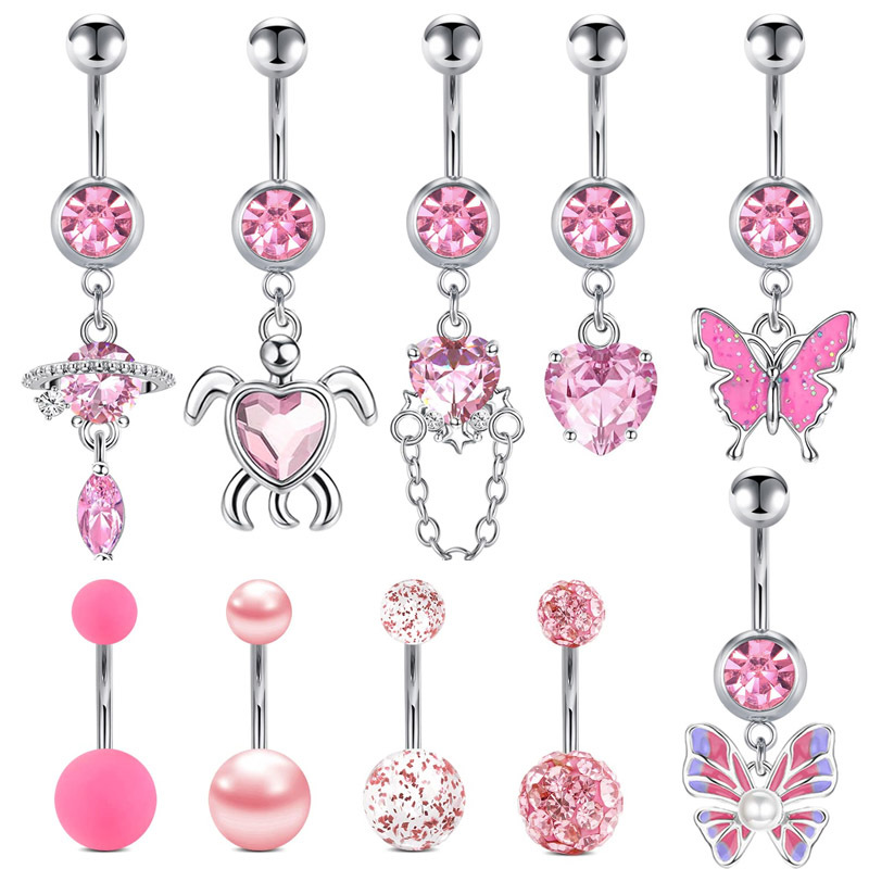 Anneau de ventre en acier inoxydable, papillon, pour femme & avec zircone cubique, plus de couleurs à choisir Vendu par PC