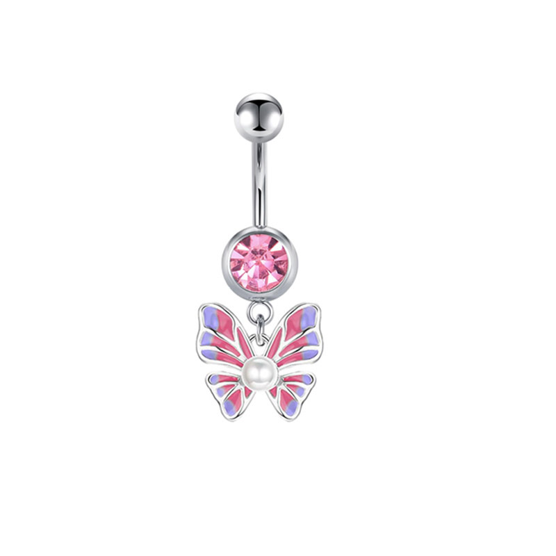Anneau de ventre en acier inoxydable, papillon, avec strass, plus de couleurs à choisir Vendu par PC