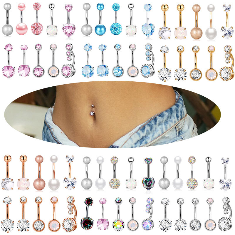 Anneau de ventre en acier inoxydable, acier inoxydable 316L, Rond, avec strass, plus de couleurs à choisir Vendu par lot