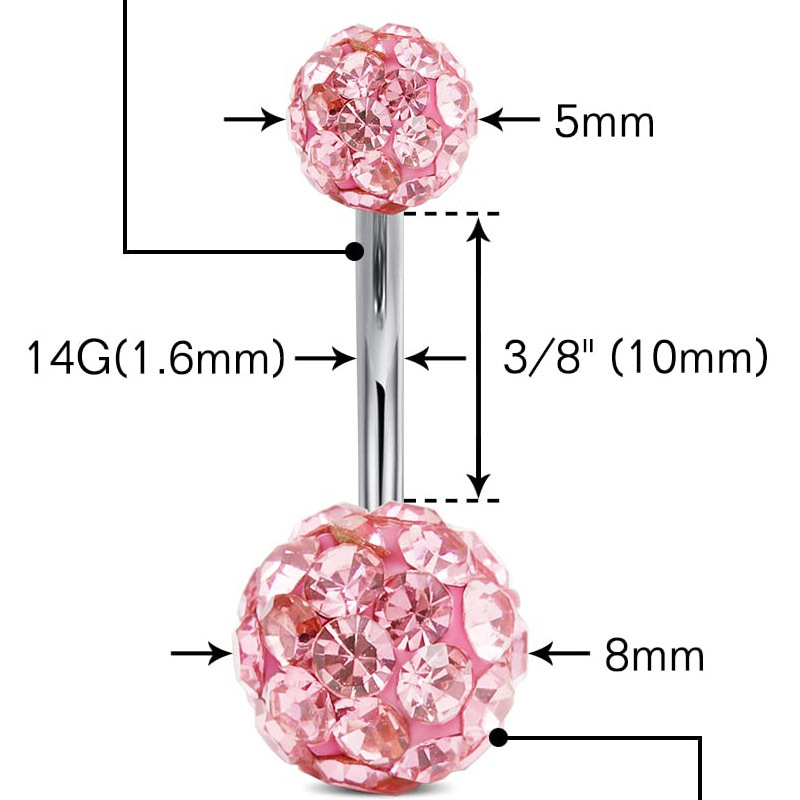 Anneau de ventre en acier inoxydable, avec cristal, glandpompon, facettes & avec strass, plus de couleurs à choisir Vendu par PC