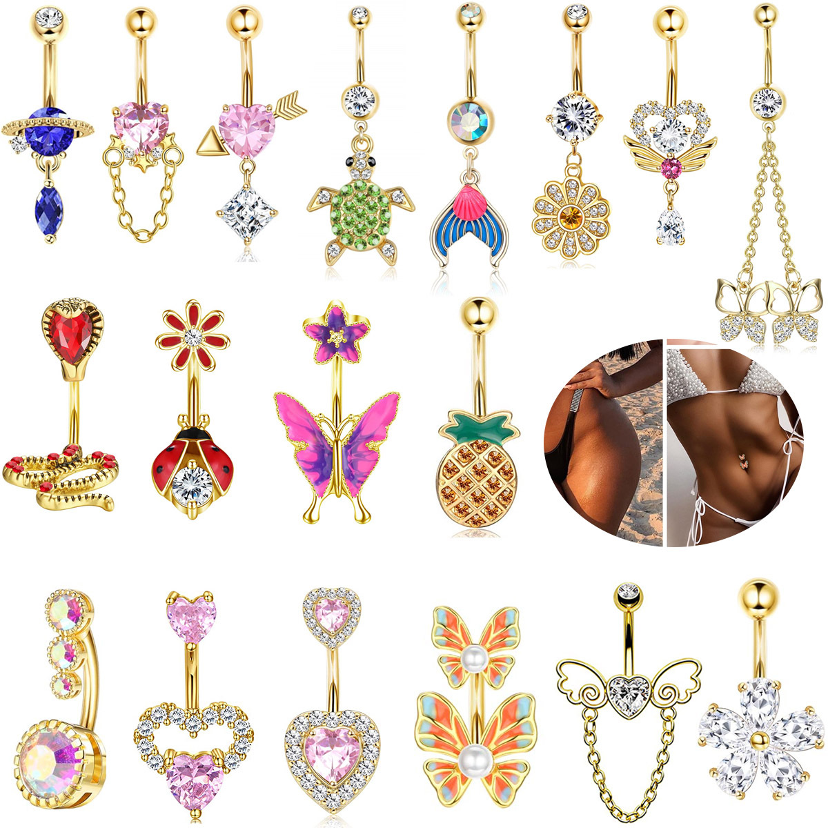 Anneau de ventre en acier inoxydable, papillon, pour femme & avec zircone cubique, plus de couleurs à choisir Vendu par PC